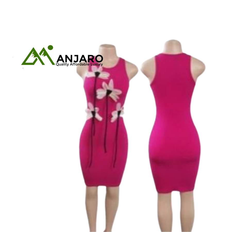Elevate your style with this 3D floral appliqué bodycon mini dress, designed to combine elegance and bold fashion. This sleeveless dress features a classic round neckline and a slim-fit silhouette that beautifully contours your shape. The standout detail is the 3D floral embellishment, adding a touch of sophistication and charm. Available in eye-catching colors including hot pink, blue, brown, black, white, and beige, it’s a must-have for cocktail nights, parties, and chic events.