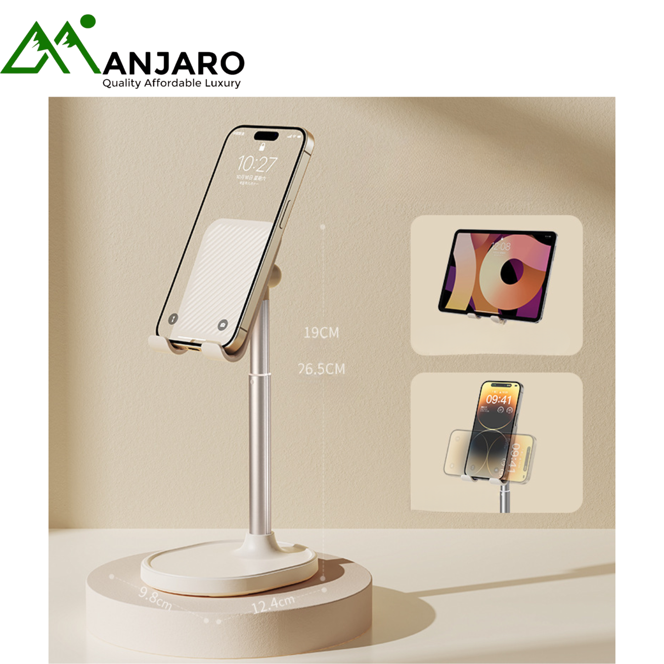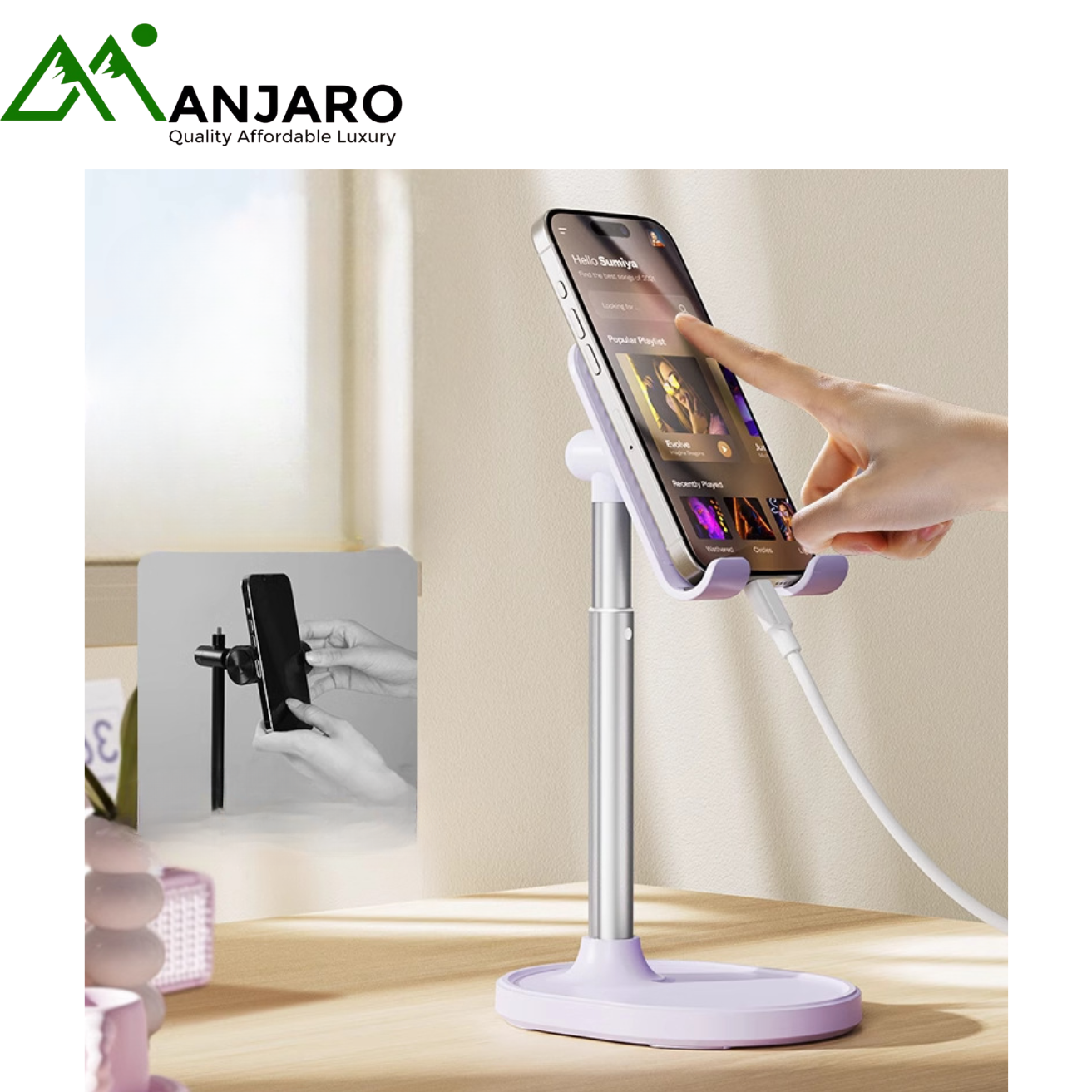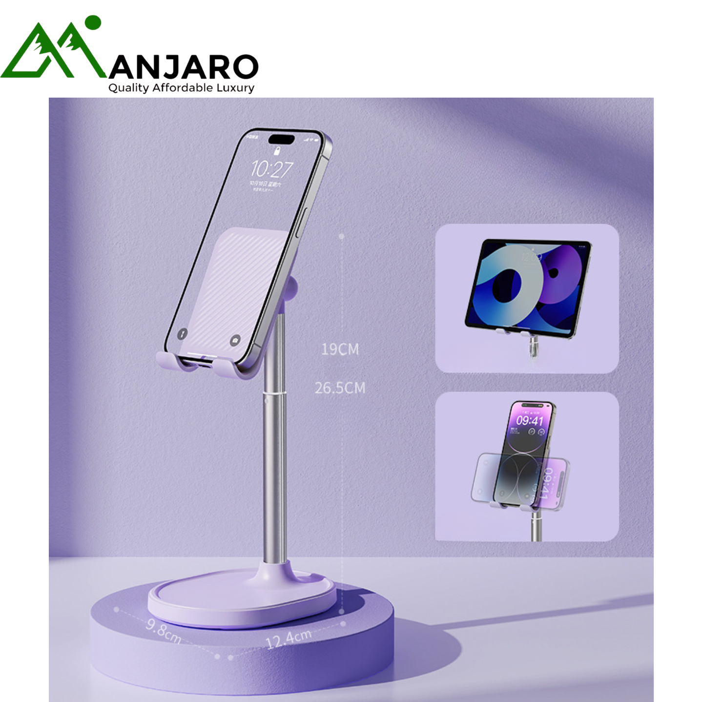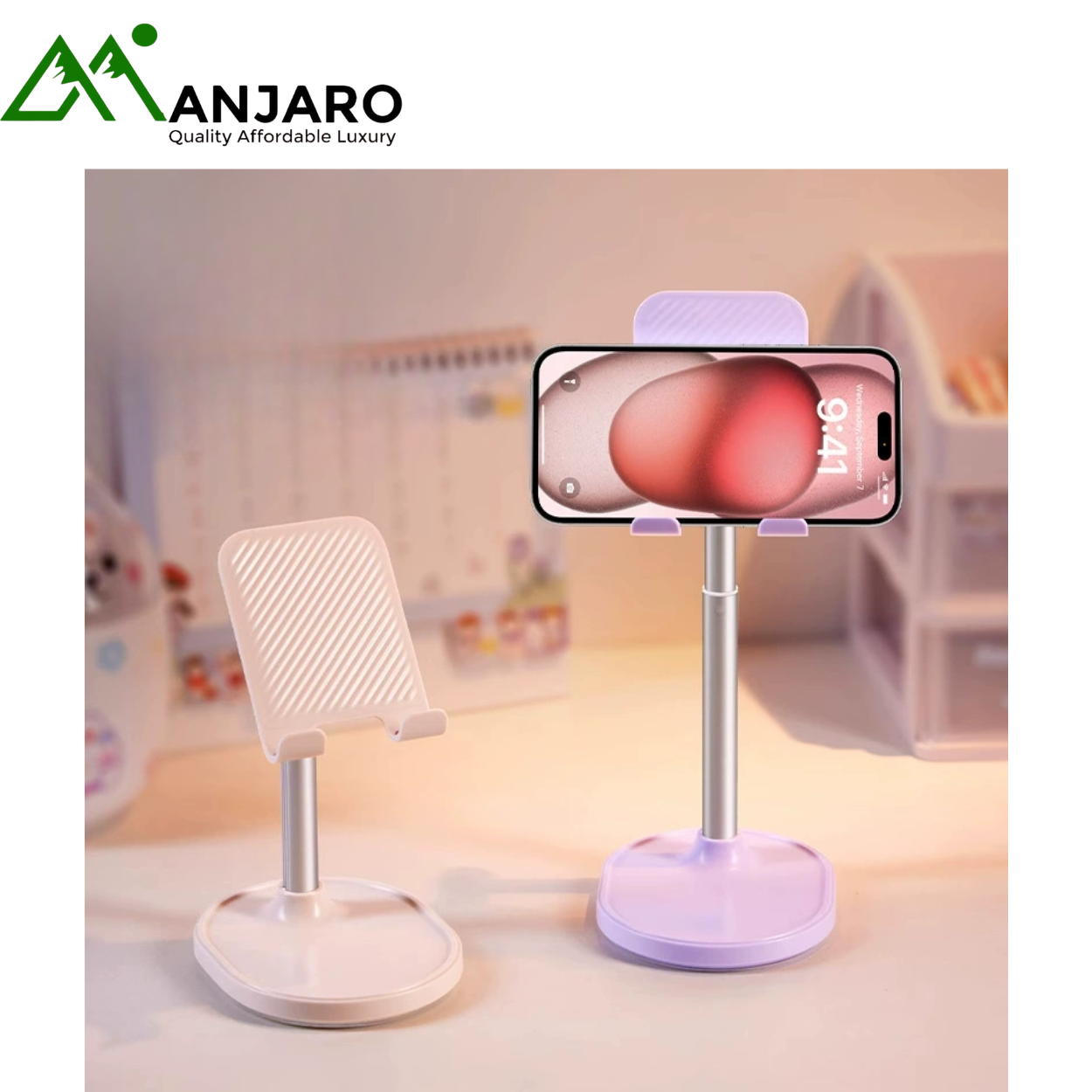 Upgrade your workspace with the Adjustable Alloy Desktop Phone & Tablet Stand (X76) — a premium, creative, and sturdy stand designed for everyday use. Built from high-strength alloy, this sleek and minimal holder offers 360° adjustability, smooth height lifting, and solid support for both phones and tablets. Whether you’re working, studying, or binge-watching your favorite shows, the X76 stand delivers hands-free convenience with a luxurious, modern touch. Its dual-color design in Cream White and Taro Purple complements any aesthetic, making it a perfect accessory for homes, offices, or live-stream setups.