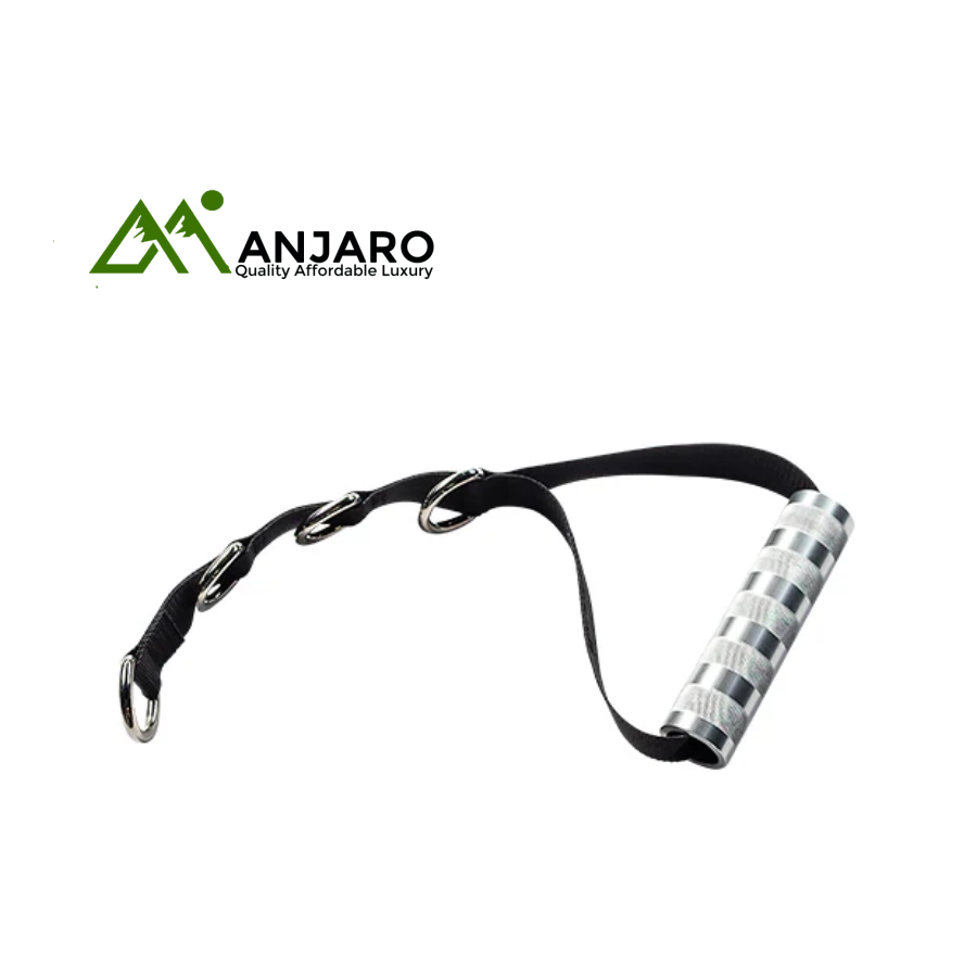 Built for comfort and control, the ergonomically designed aluminum handle features a textured grip that ensures a secure and consistent hold throughout your workout. Its heavy-duty steel D-rings allow for quick, seamless attachment to carabiners, and the adjustable strap length offers complete workout flexibility, letting you modify the distance between the grip and the anchor point in seconds.
