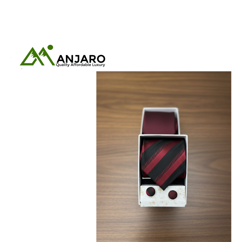Project confidence and dynamic professionalism with this essential Classic Power Tie Set. This striking 3-in-1 collection features a primary Red and Black Diagonal Stripe Necktie, a timeless pattern known for its ability to convey authority and drive, perfect for impactful business meetings or presentations. The set also includes a versatile Solid Burgundy (Maroon) Tie for a more understated yet sophisticated option, and a pair of sharp Red & Black Striped Cufflinks to seamlessly complete your powerful ensemble.