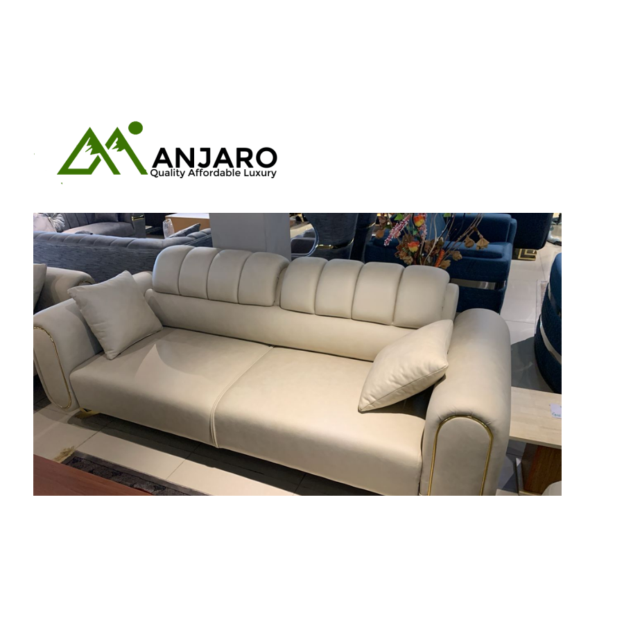 Upholstered in a soft, premium cream-toned fabric, the set features gently rolled backrests and clean, flowing lines for a look that is both inviting and refined. The eye-catching curved armchairs add a sculptural element, while the sofas provide deep, supportive seating. All pieces are elevated by slender, angled gold-tone metal legs that infuse a touch of contemporary glamour and dynamism into the design. This collection empowers you to create a chic, comfortable environment that encourages relaxation, conversation, and self-discovery.