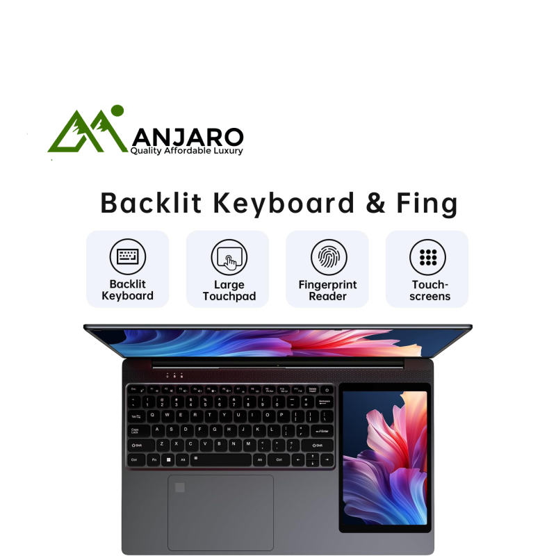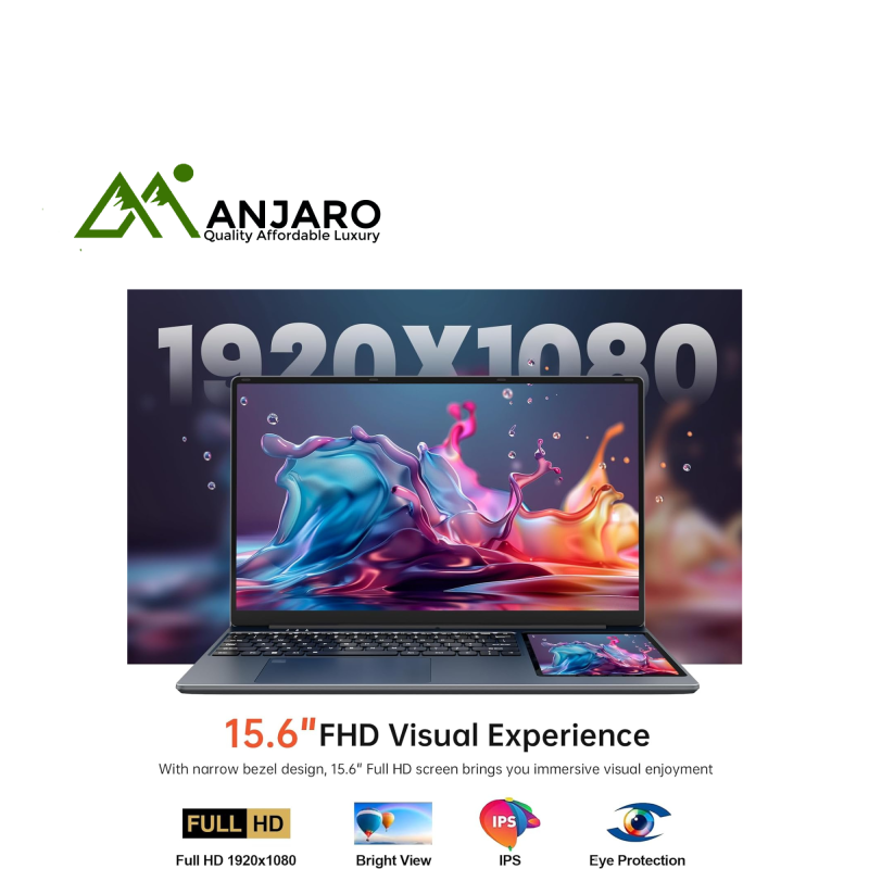 Experience a new level of productivity and multitasking with the HYRS Dual Screen Laptop, featuring a 15.6-inch Full HD IPS main display and an additional 7-inch touch screen for expanded workflow efficiency. Designed for business professionals, students, and creators, this portable PC combines performance, elegance, and innovation. Powered by the Intel N100 Quad-Core processor with a clock speed of 2.9GHz, it ensures smooth multitasking and energy-efficient operation. The 16GB DDR4 RAM and 512GB SSD storage deliver high-speed data access, while the Windows 11 Pro operating system provides a modern, secure computing experience. The laptop’s metal body, backlit keyboard, and dual-screen setup make it perfect for productivity, presentations, and multitasking on the go. Equipped with WiFi 802.11ac, Bluetooth support, and a high-density 4500mAh lithium battery, it’s both powerful and portable—ideal for business and education use.