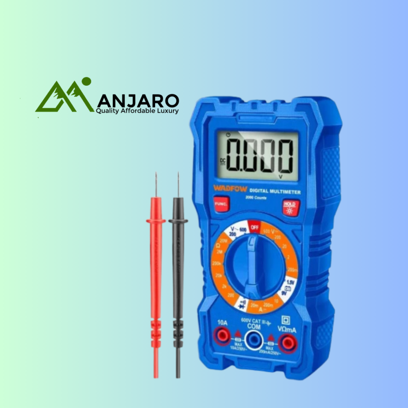 The Wadfow WDM2508 Digital Multimeter is a professional-grade measuring instrument designed for accuracy, versatility, and convenience. With a 2000-count LCD display and multiple measurement modes, it’s ideal for electricians, engineers, and DIY enthusiasts. It measures DC and AC voltage, DC current, and resistance, and includes diode and battery testing functions. The WDM2508 also features a data hold option and low battery indication for efficient and reliable performance in all testing conditions.