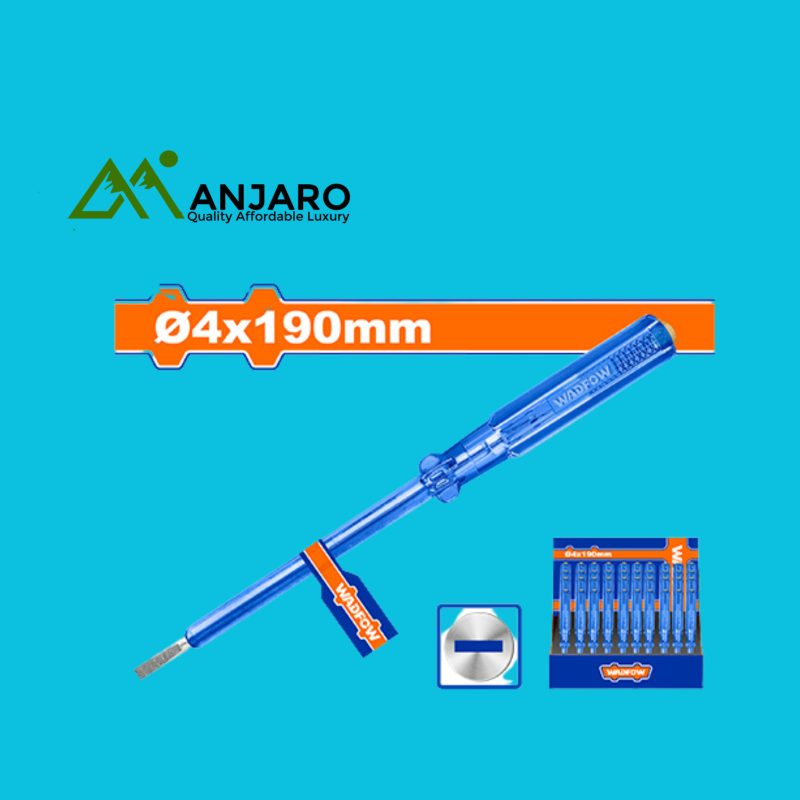 The Wadfow WTP1501 and WTP1903 Test Pencils are reliable tools designed for safe, efficient voltage testing in electrical applications. Built for professionals and DIY users alike, these insulated test screwdrivers accurately detect AC voltage levels between 100V and 500V. Their slotted tips and durable design ensure long-lasting performance, while the comfortable handle provides a firm grip during use. Each unit is neatly packed in a display color box, making it ideal for both individual and retail use.