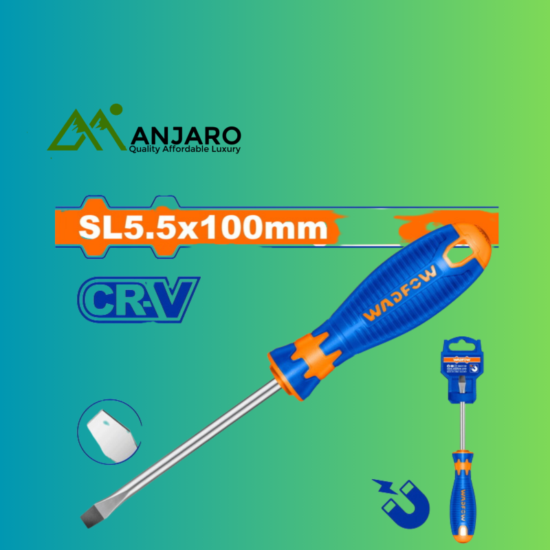 The WSD1254 Slotted Screwdriver is a must-have hand tool for professionals and DIY users who demand durability, precision, and comfort. Featuring a 5.5mm slotted tip crafted from premium Cr-V steel, this screwdriver ensures strength, resistance to wear, and long-lasting performance. The magnetised black-finish tip provides superior grip on screws, making fastening and removal efficient and secure. Its ergonomic soft grip handle reduces hand fatigue, while the round shank design ensures versatility for a wide range of applications. Ideal for workshops, construction, electrical work, and household repairs.