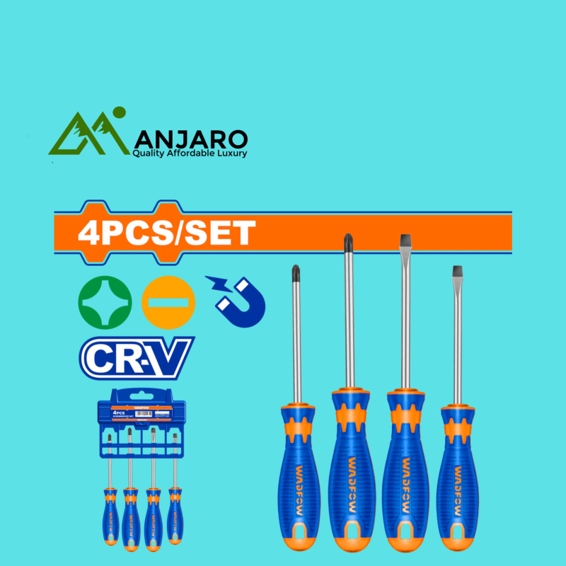 The WSS1204 4 Pcs Screwdriver Set is a versatile solution for every toolbox, offering a reliable mix of Phillips and slotted screwdrivers. Built from durable Cr-V steel with round shanks, these tools are designed to deliver strength, precision, and long-lasting performance. Each screwdriver features magnetic tips for easy screw handling and comfortable ergonomic handles for a secure grip, making it ideal for professional and DIY use.