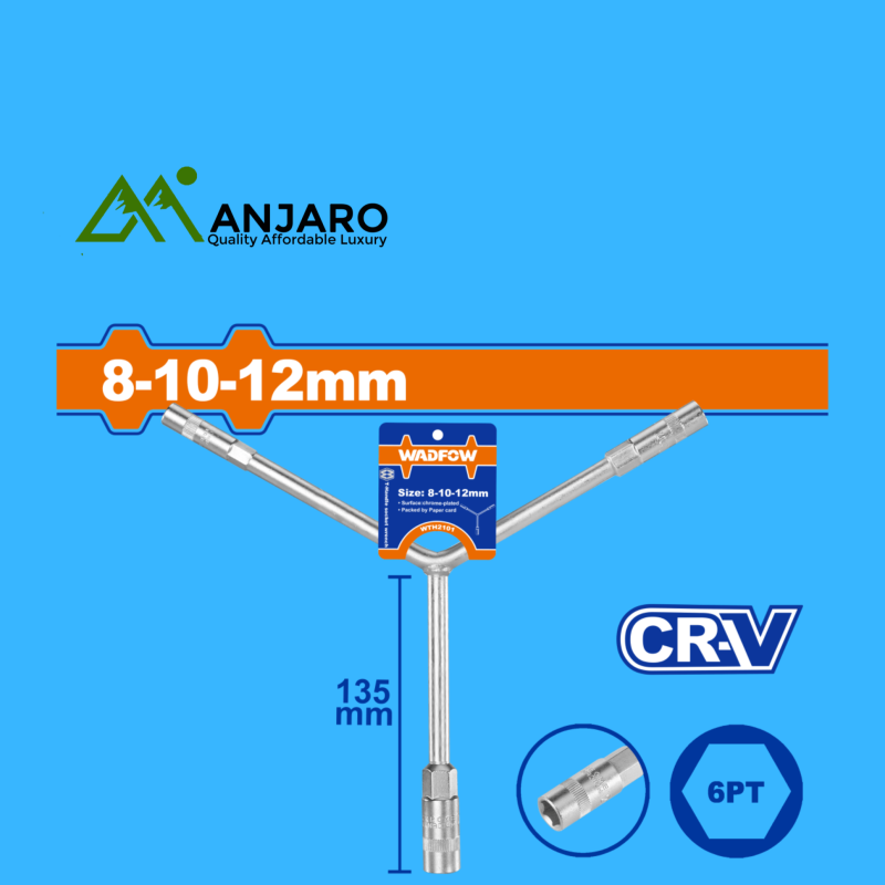 The WTH2101 Y-Type Socket Wrench is a practical and reliable hand tool designed for both professionals and DIY enthusiasts. With three socket sizes in one tool (8mm, 10mm, and 12mm), it provides convenience for tightening and loosening bolts in automotive, bicycle, machinery, and household applications.
