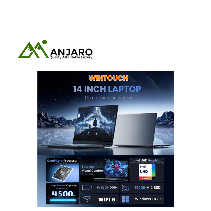 Get reliable performance and everyday efficiency with the Wintouch 14-Inch Intel N4020 Laptop — an affordable, lightweight notebook built for students, professionals, and home users. Designed with a 14-inch HD IPS display (1366×768), this laptop delivers crisp visuals and comfortable viewing for work, entertainment, and online learning.