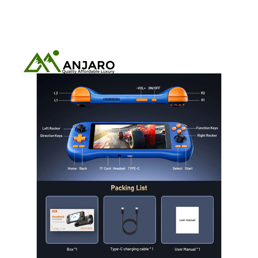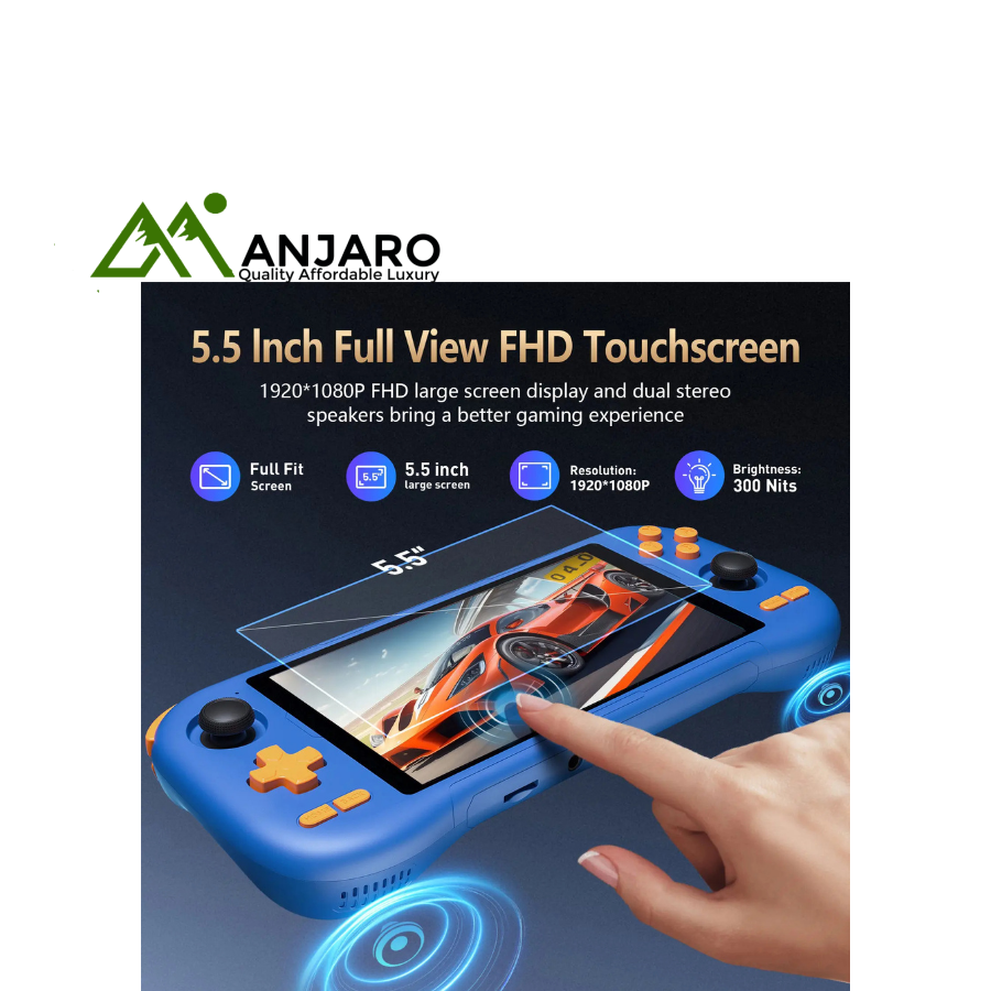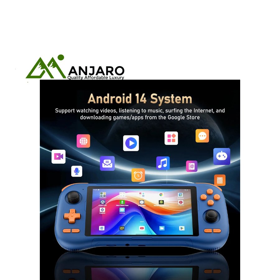 Experience the perfect blend of classic gaming and modern convenience with the KINHANK K56 Handheld Game Console. Featuring a large 5.5-inch touch display, long‐lasting 5000 mAh battery, and Android 14 OS, this device offers you smooth performance, extensive game compatibility, and portability that fits your lifestyle. With 6 GB LPDDR4x RAM and 128 GB eMMC storage, you’ll have space for games, apps, and multimedia. Dual speakers, WiFi & Bluetooth connectivity, and multiple color options make K56 a flexible and stylish choice for both retro and Android gaming.