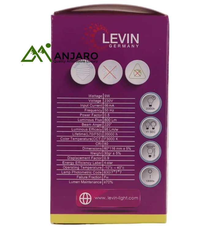 Create a cozy and welcoming atmosphere with the LEVIN LED A-Bulb 9W E27, featuring a 3000K warm white glow that’s perfect for relaxing environments. This energy-efficient bulb offers the perfect balance between brightness and comfort, ideal for bedrooms, living rooms, restaurants and decorative lighting.