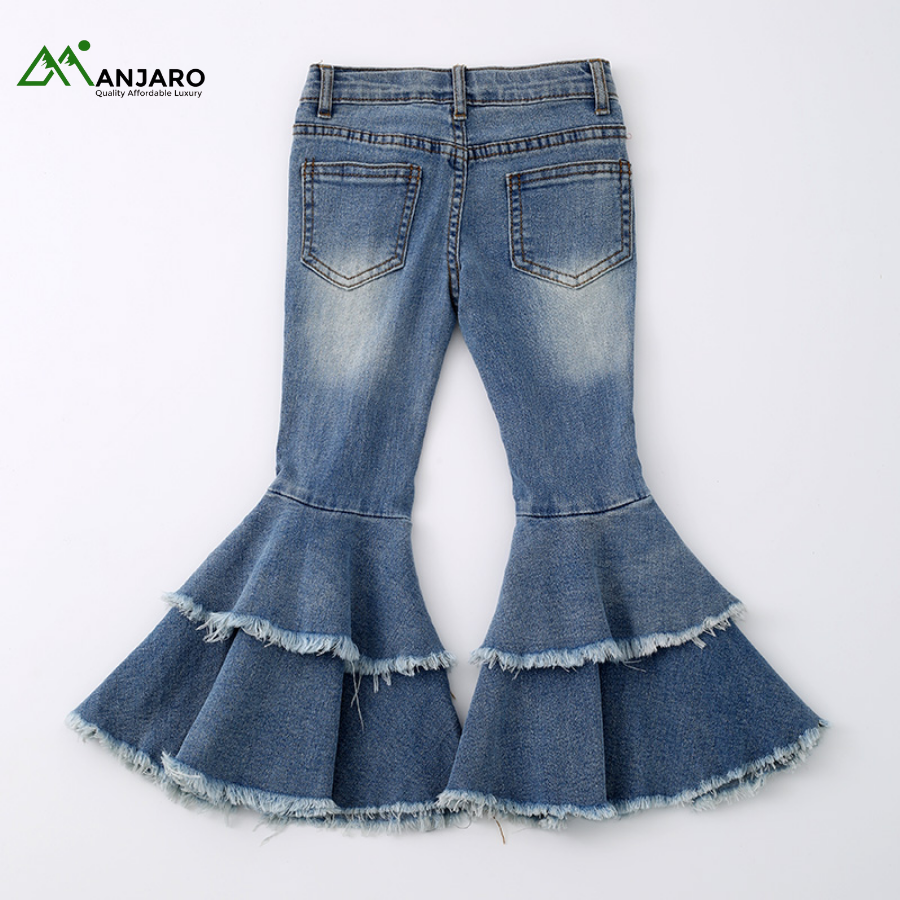 Perfect for fall, winter, spring, and summer, these full-length flare pants are ideal for casual outings, school, or family gatherings, combining classic denim style with toddler-friendly comfort.