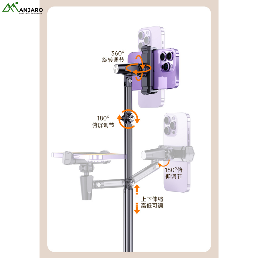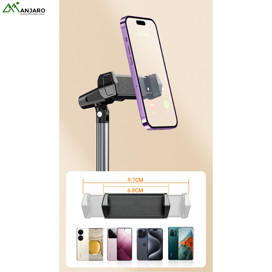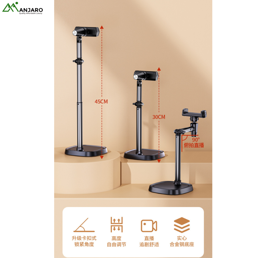 Constructed from durable aluminum alloy, it is lightweight yet robust, offering long-lasting stability. Its lifting and telescopic design enables smooth height and angle adjustments, making it ideal for desktop use in offices, dorms, studios, or at home. With universal compatibility, this multifunctional stand ensures your device stays secure while delivering a professional setup for streaming, recording, or video calls.