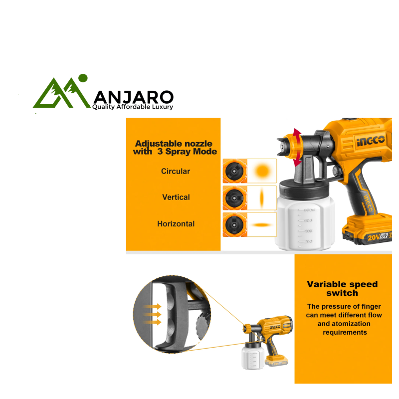 The high-capacity 1000ml container and adjustable spray amplitude provide flexibility for various projects — from furniture refinishing to large-scale decor work. Built for performance and ease of use, the CSGLI2004 ensures consistent paint flow at up to 800ml/min, and supports viscosities up to 120 DIN-s, making it perfect for multiple coating types.