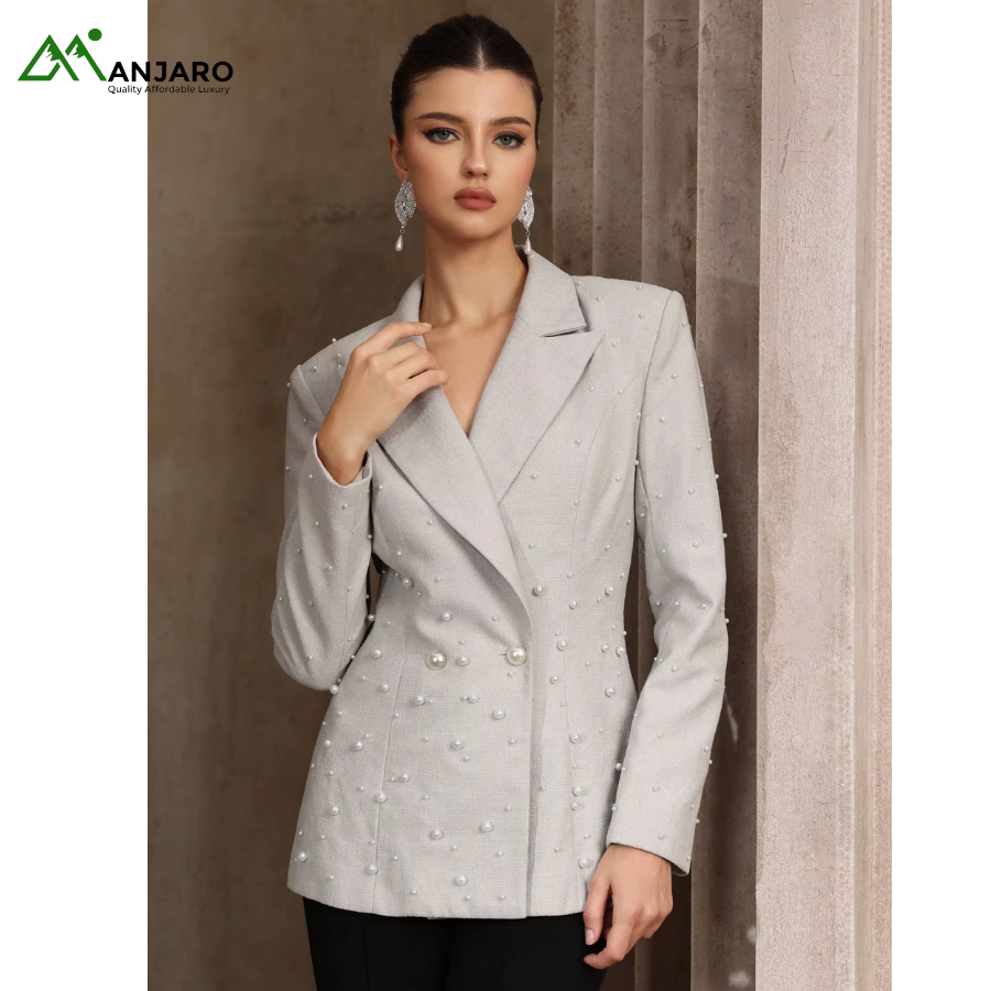 Featuring exquisite pearl and rivet bead embroidery, this blazer adds a refined, feminine twist to a solid single-button silhouette. The square lapel collar and tailored regular fit make it the ideal choice for office wear, business meetings, and elegant casual outings.