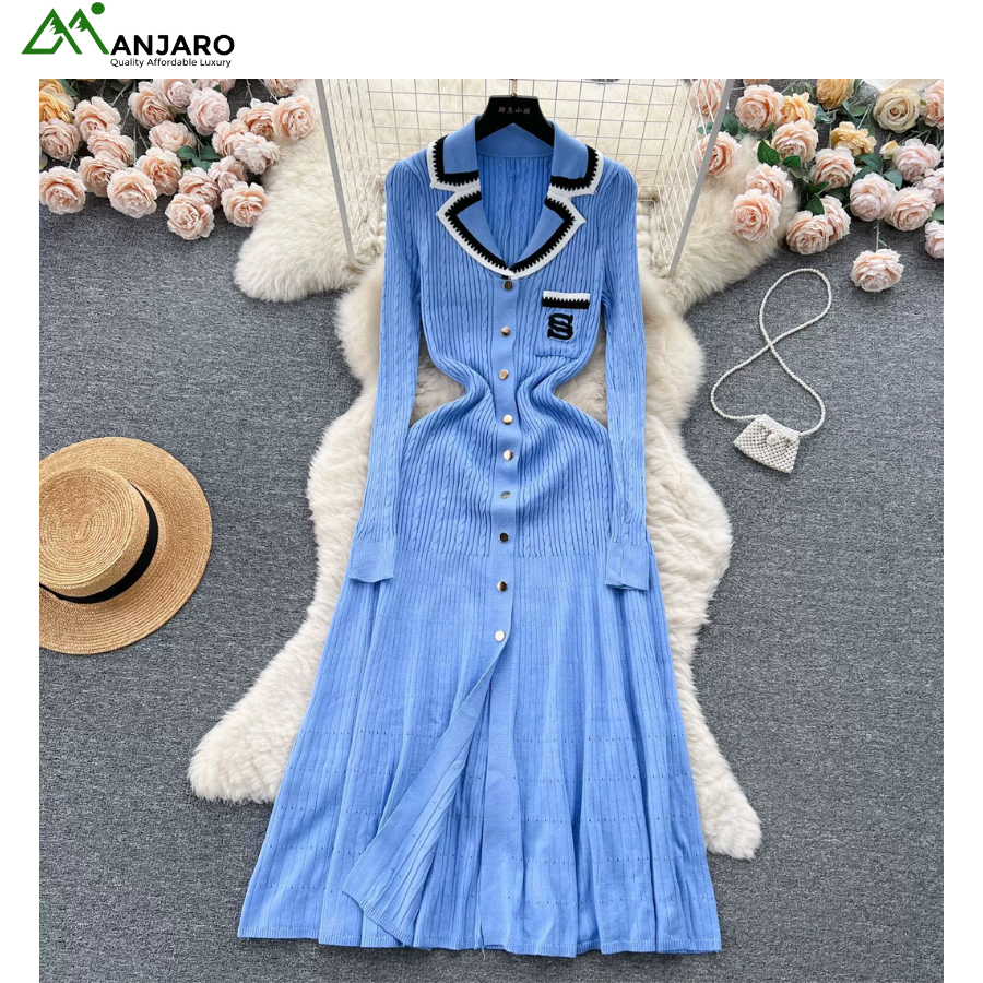 Step into effortless elegance with the European & American Polo Collar Knitted Dress, a refined fusion of comfort, class, and confidence.