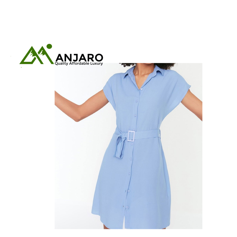 Slip into effortless style with the Blue Belted Shirt Dress, designed for casual days that call for confidence and comfort. Crafted from soft, breathable 100% Lyocell (viscose) with a woven texture, this mini-length dress features a flattering shirt collar, short sleeves, and a self-tie belt that defines the waist while keeping the vibe laid-back.