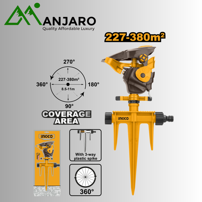 Perfect for lawns, flowerbeds, and landscapes, this sprinkler provides smooth, gear-driven operation — saving water while maintaining consistent spray performance.