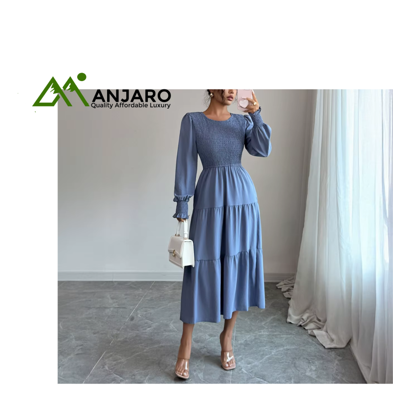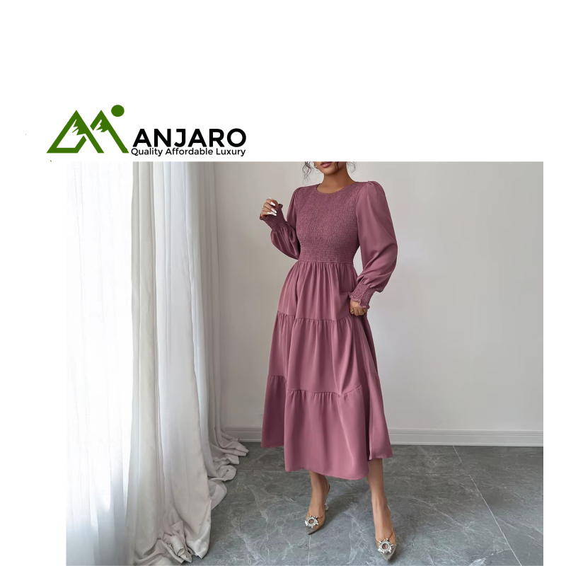 Elevate your everyday style with the Long Sleeve O-Neck Midi Ladies Dress, a versatile A-line silhouette perfect for fall and transitional seasons. Crafted from breathable 100% polyester with a soft worsted texture, this dress combines comfort with effortless elegance. Its empire waistline, pleated detail, and flared hem create a flattering look, while the practical pockets add a functional touch. Ideal for daily wear, office, or weekend outings, it’s your go-to dress for chic simplicity.