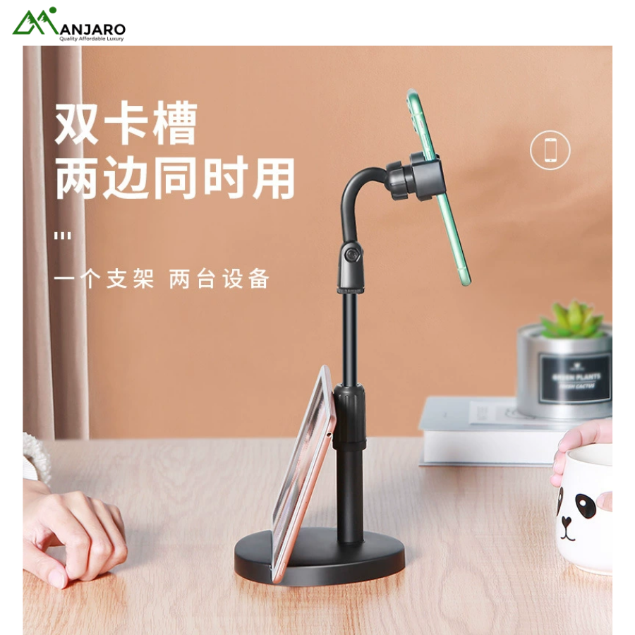 Its dual card slot design allows it to hold both a phone and tablet simultaneously, while the retractable height adjustment and rotating head ensure perfect viewing angles. Made with durable plastic and a stable base, it’s lightweight, fully portable, and universally compatible—making it an essential desk, bedside, and travel companion.