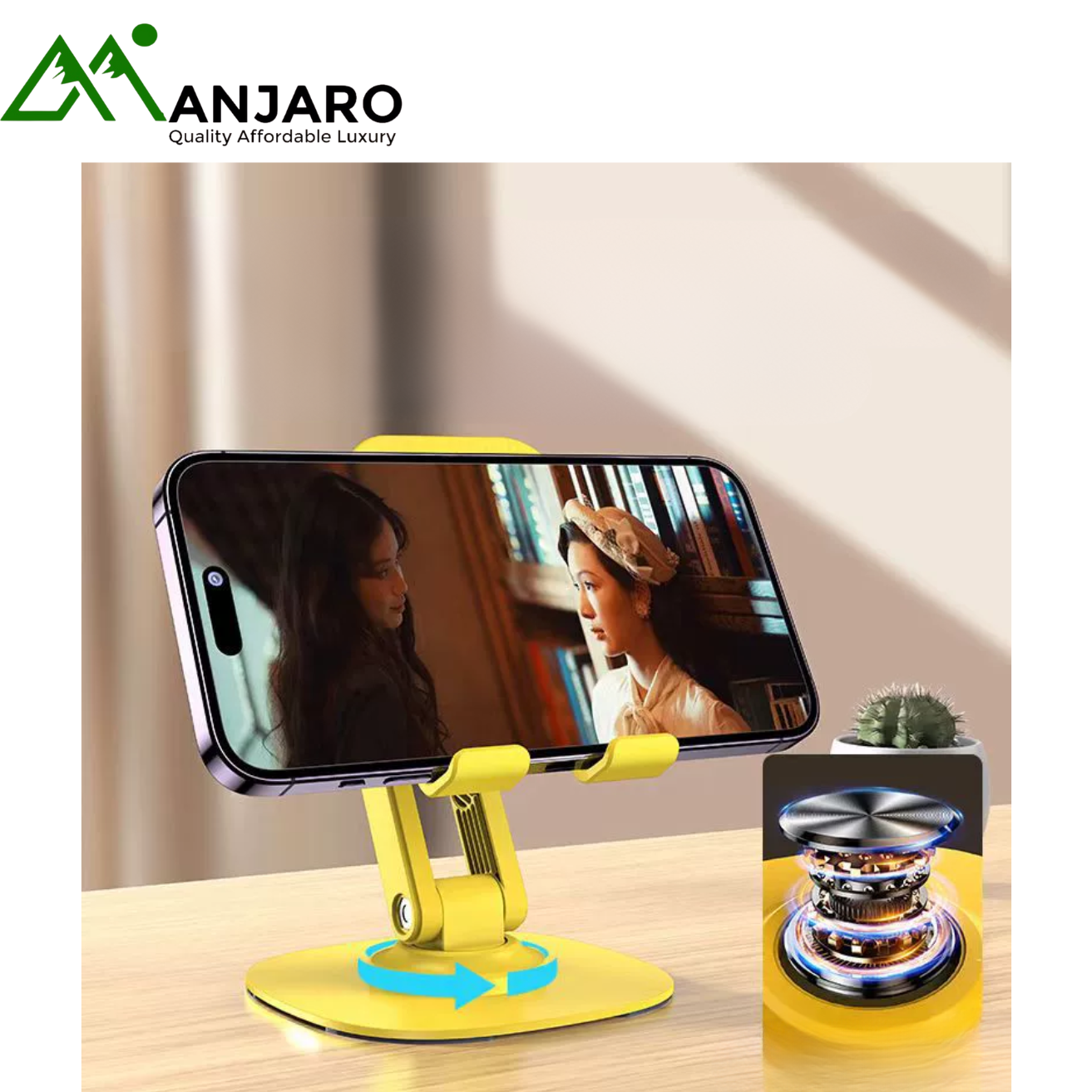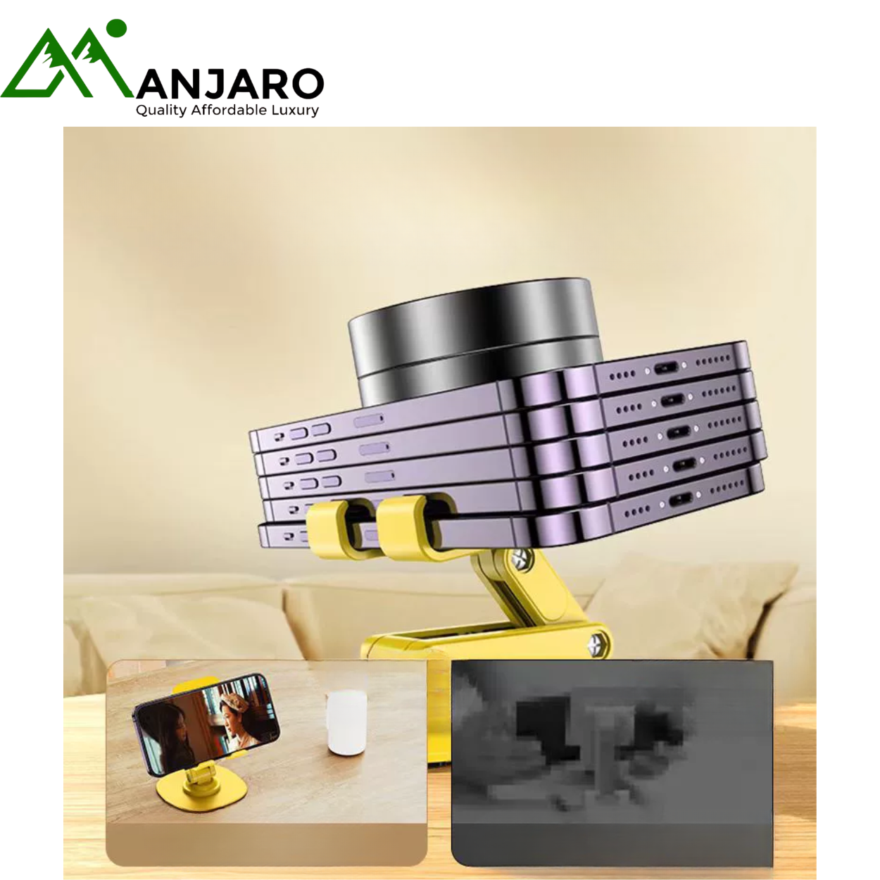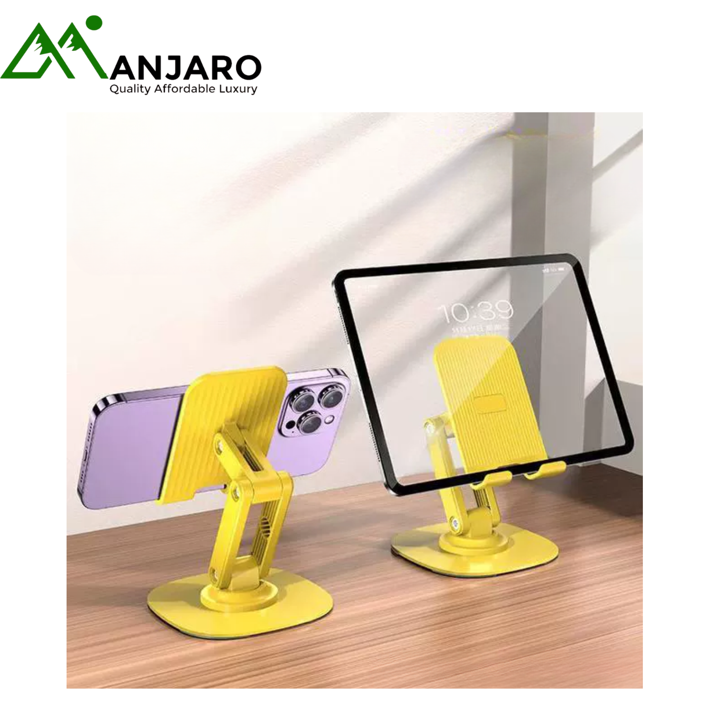 Experience effortless comfort and smart functionality with the 360° Rotating Alloy Phone & Tablet Stand (K69) — a sleek, heavy-duty stand designed for versatility and stability. Crafted with a carbon steel alloy base, this stand offers exceptional balance, smooth rotation, and precise height adjustment for all your viewing needs. Whether you’re attending online classes, streaming your favorite shows, or working from your dorm, home, or office, the K69 stand ensures your devices stay secure and perfectly positioned. Its dual-axis folding design makes it compact and travel-friendly, while the Obsidian Black and Lemon Yellow finishes add a stylish touch to your workspace.