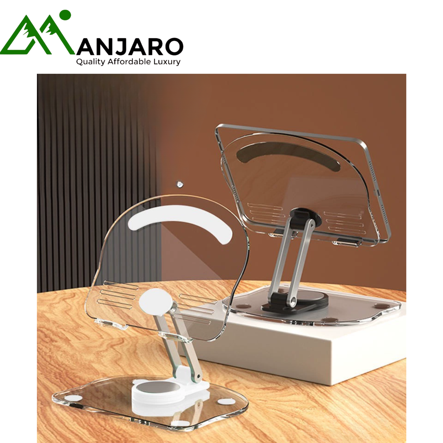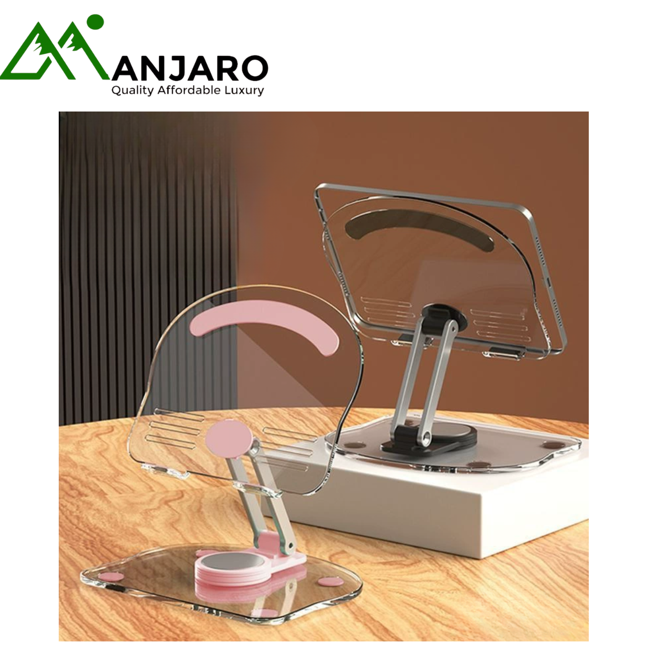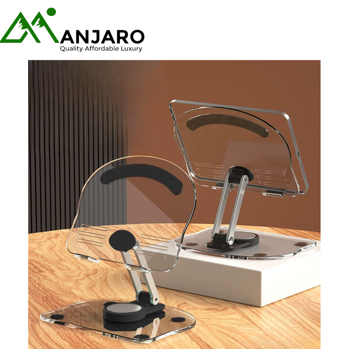The New Acrylic Transparent Tablet Stand combines modern elegance with unmatched functionality. Designed for both professionals and everyday users, this stand is made from high-quality, durable acrylic plastic that offers a clean, minimalist aesthetic while maintaining strong support for your devices. Its 360° rotation and adjustable height allow you to find the perfect viewing angle for work, study, video calls, or entertainment. The foldable design ensures compact storage and easy portability — ideal for home offices, classrooms, and creative workspaces. Stylish yet sturdy, this stand complements any environment while enhancing your digital experience.