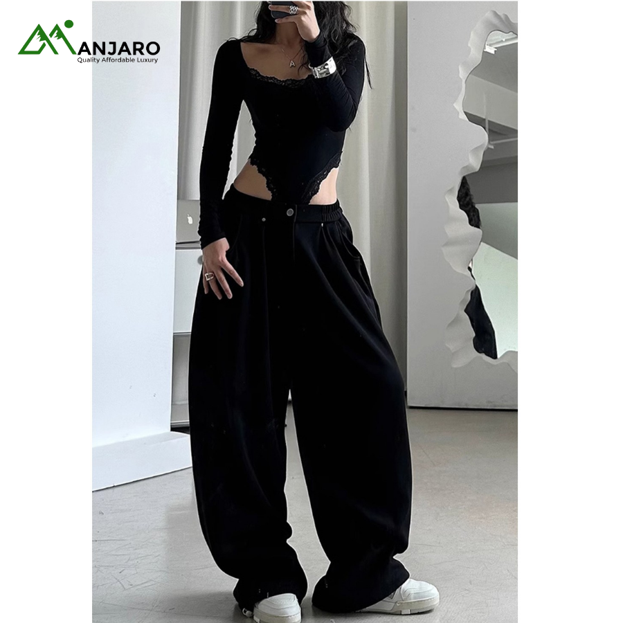 The high-waisted design enhances shape while offering a relaxed, non-elastic fit perfect for spring days, casual outings, or all-day comfort. Finished with practical pockets and a street-personality vibe, these pants pair easily with tees, hoodies, or oversized tops for a modern, all-match look.
