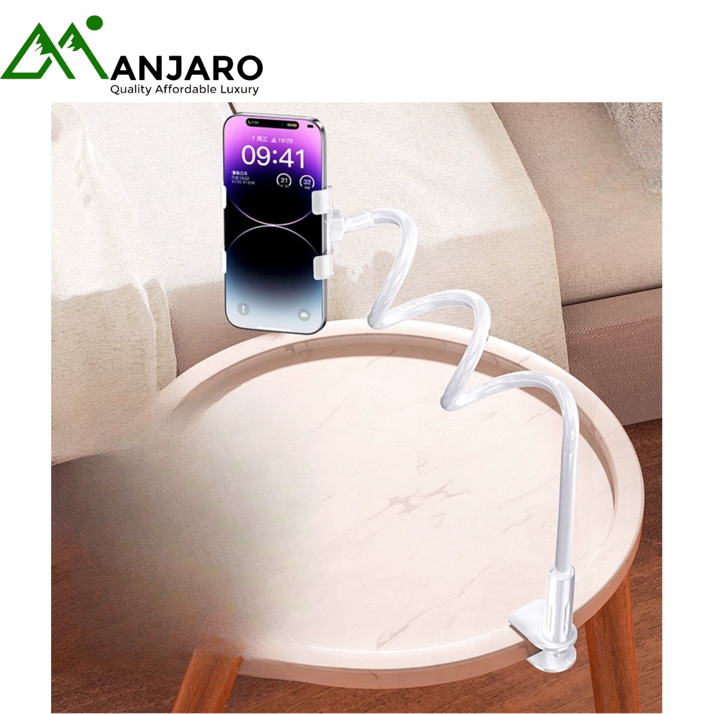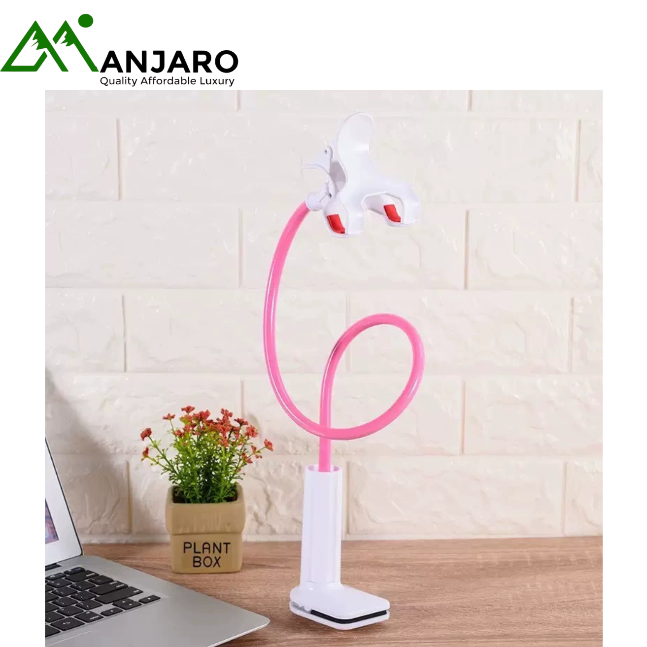 Made from high-quality, durable plastic, this 75cm long spiral holder features a flexible arm with 360° rotation, allowing you to adjust your phone to any angle for optimal viewing. Perfect for your bedside, office desk, kitchen, or car, it provides a stable grip and creative design ideal for watching videos, video calls, or live streaming.