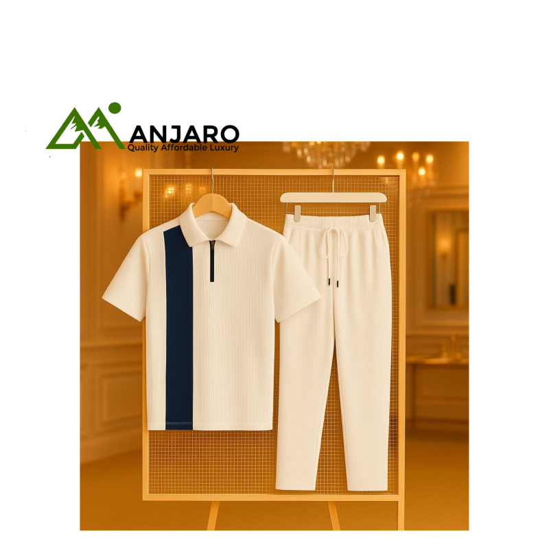 Step into effortless style with this light pink and dark blue matching set, featuring a short-sleeve polo shirt with zipper detail and jogger-style pants designed for all-day comfort. Whether you’re lounging, traveling, or out with friends, this coordinated set delivers a sleek, modern look without compromising on ease.