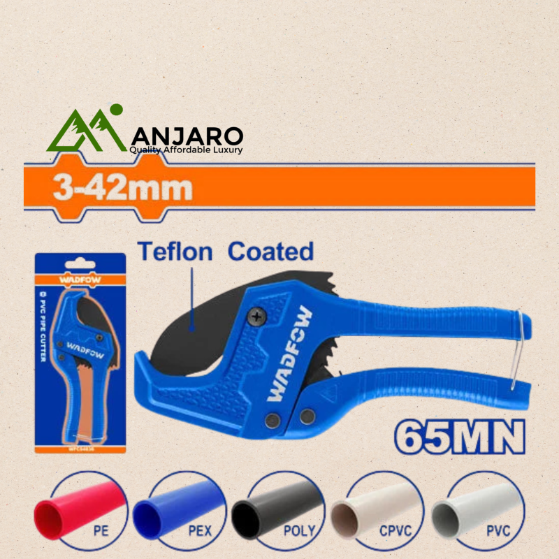 The Wadfow WPC54642 PVC Pipe Cutter is a precision-engineered cutting tool designed for plumbers, contractors, and DIY enthusiasts who demand efficiency and accuracy. With its sharp, Teflon-coated blade and durable aluminum body, it delivers smooth, clean cuts on PVC pipes in a single motion. The compact 203mm design ensures easy handling, while the 3–42mm cutting capacity makes it versatile for various pipe sizes. Packed on a sliding card for convenience, this pipe cutter is built for long-lasting performance in plumbing, irrigation, and construction projects.