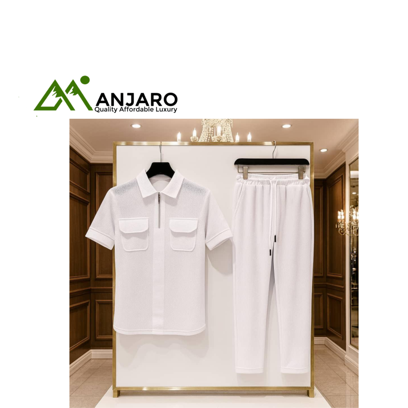 Upgrade your casual wardrobe with this Men’s White Set featuring a sleek polo shirt and matching jogger pants. Designed for comfort and effortless style, this set is perfect for daily wear, lounging, or casual outings. The polo shirt boasts a modern fit with a soft, breathable fabric, while the jogger pants offer an adjustable elastic waistband, drawstring, and practical side cargo pocket for convenience. This versatile set blends style, comfort, and functionality, making it a must-have for the modern man who values both fashion and ease.