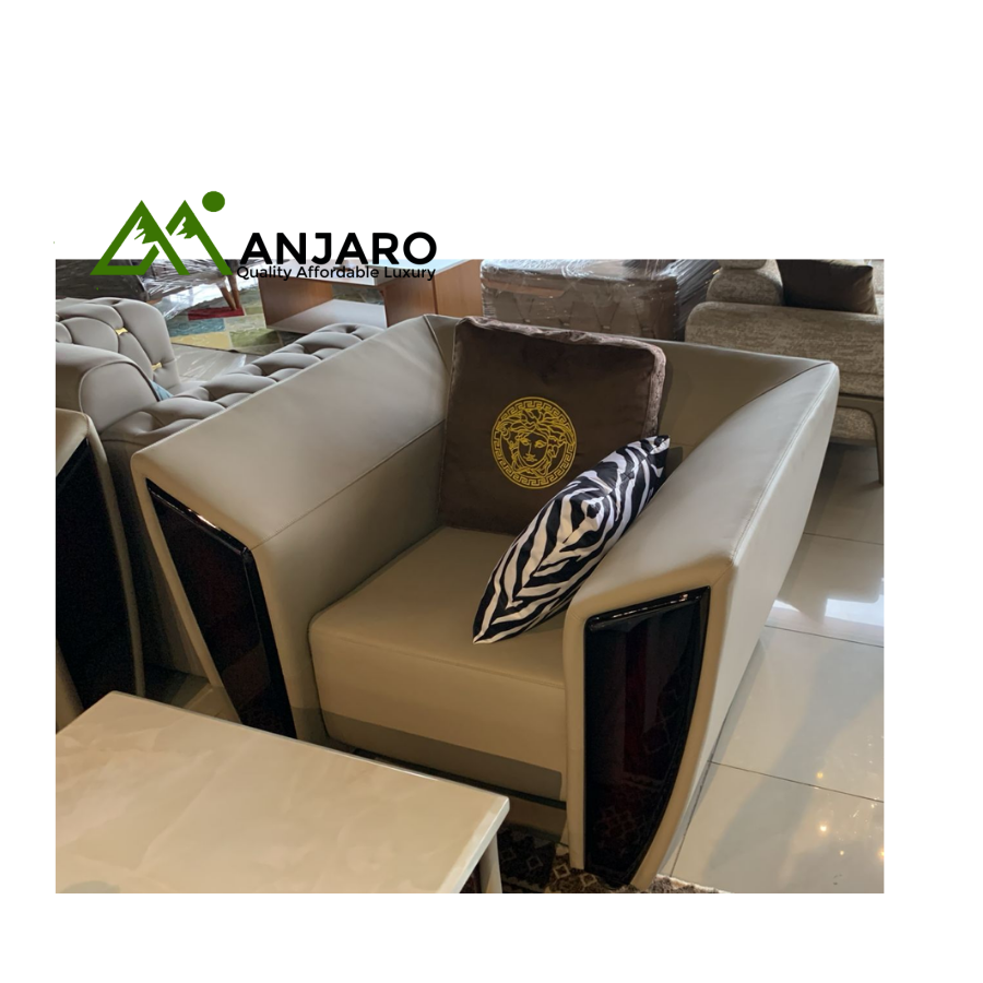Elevate your living space to gallery-level elegance with the Signature Serenity Sofa Set and Table. This dynamic 4-piece collection is the epitome of luxurious, contemporary living, offering both unparalleled comfort and striking visual appeal. The spacious sofa and accompanying armchairs are upholstered in a premium, smooth Beige/Taupe Leatherette that is both durable and easy to maintain. The design is accented by bold, curved dark wood side panels which frame the seating and add an organic, executive touch. Anchoring the ensemble is the stunning center coffee table, featuring a chic white marble-look top and a unique tufted leatherette/wood base. This set is a must-have for those seeking to create a sophisticated, forward-thinking gathering space that fosters community and self-discovery.