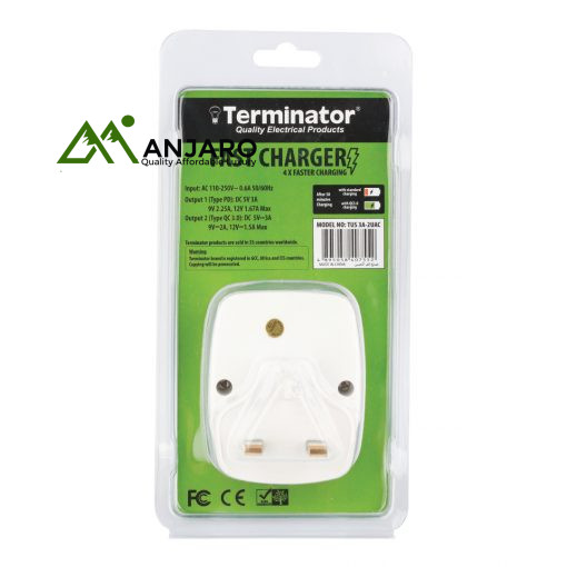 Power up your devices faster with the Terminator TUS 3A-2UAC USB Charger, engineered for high-speed charging across all your USB-enabled gadgets. This smart charger features 2 USB ports – 1 USB-A and 1 USB-C – delivering a total power output of 36W and 3 Amps, making it ideal for modern smartphones, tablets and other electronics.