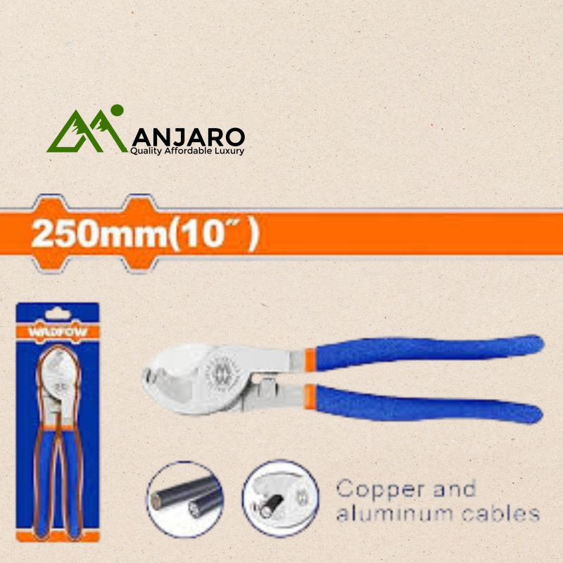The Wadfow WCT2610 Cable Cutter is a robust, heavy-duty tool designed for precision and strength in cutting thick cables and wires. Measuring 10 inches (250mm) in length, it features a polished surface treated with anti-rust oil for enhanced durability and long-term performance. The comfortable plastic handle ensures a firm, non-slip grip, making it suitable for electrical work, construction, and general cable cutting tasks. Its compact yet powerful design allows for efficient operation with minimal effort.