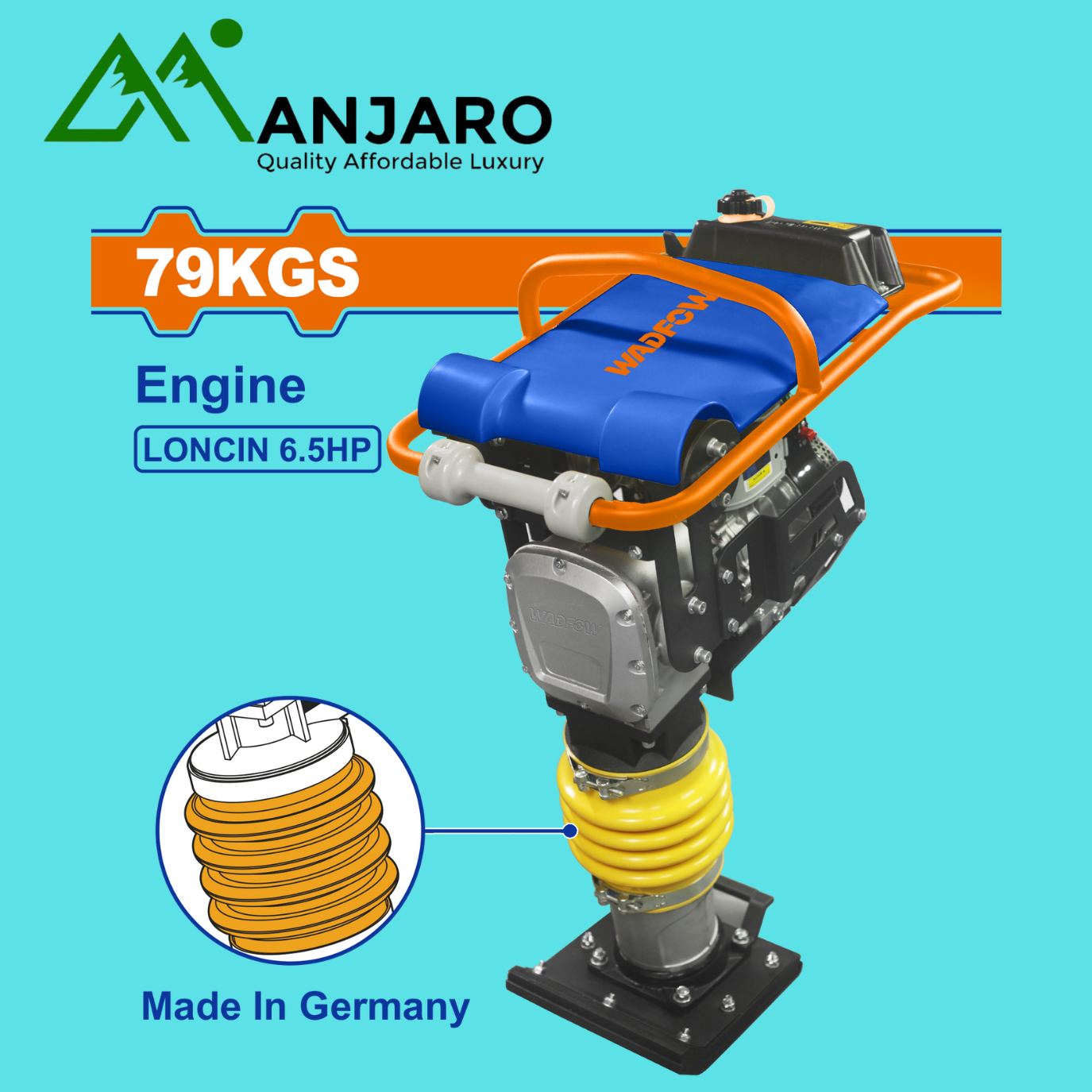 The WTA1A80 Gasoline Tamping Rammer is a powerful, heavy-duty compaction machine designed for construction professionals who require strong impact force, deep soil penetration, and reliable performance on demanding job sites. Built with a robust 6.5HP gasoline engine, this rammer delivers consistent power for compacting soil, gravel, sand, and backfill materials with precision and speed.