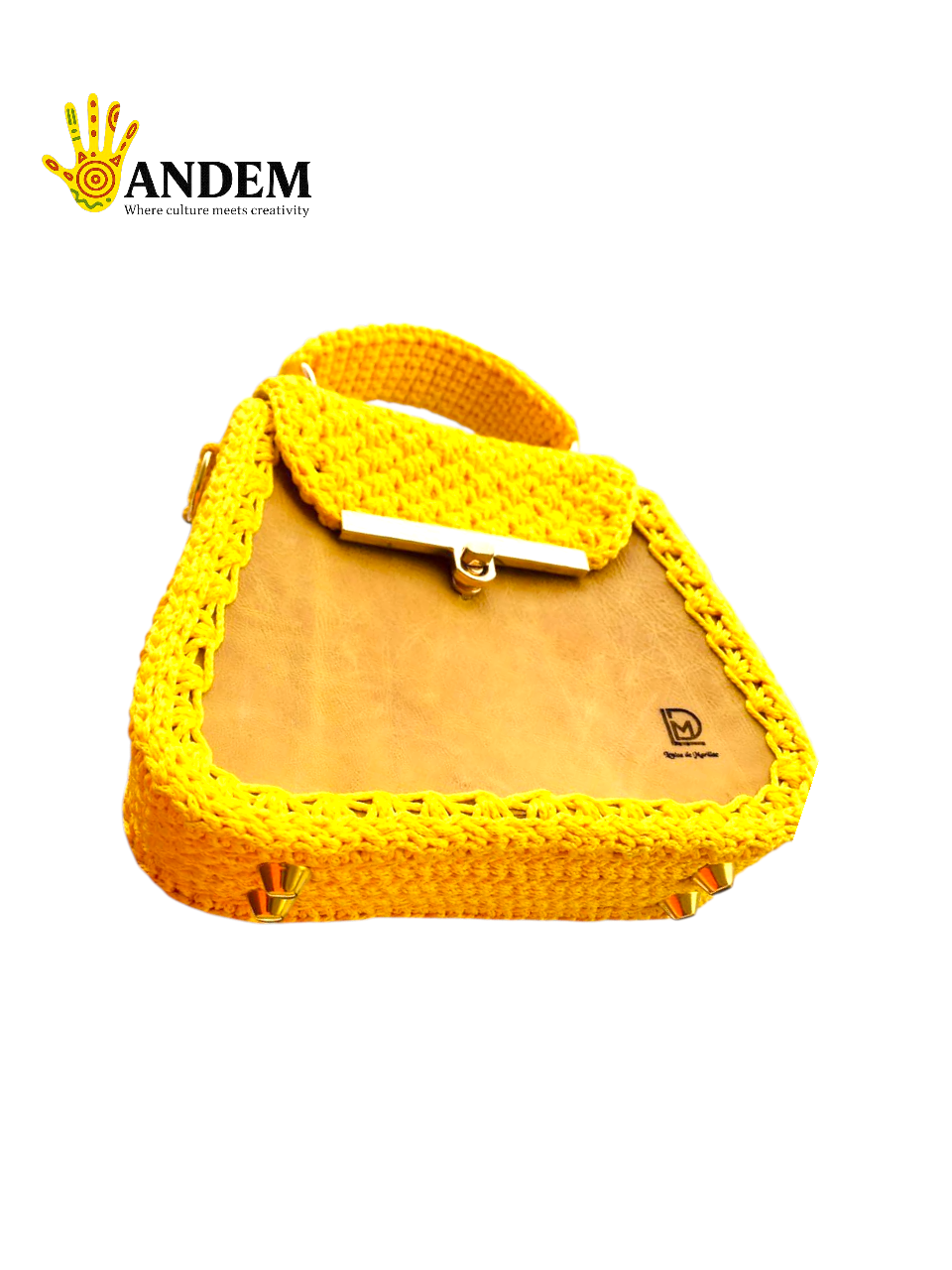 Practical yet original, The Amina Bag brightens every outfit with its handcrafted touch and sunny glow. Its unique blend of smooth leather and handwoven crochet reflects elegance, confidence, and African warmth.