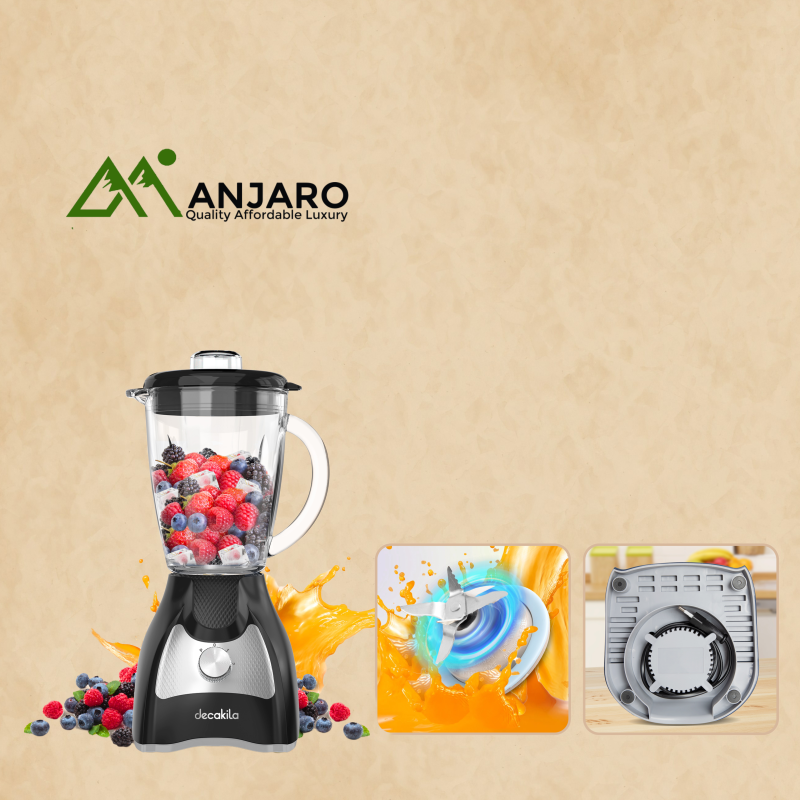 The Decakila KEJB045B Stand Blender is a powerful and versatile kitchen appliance designed to handle a variety of blending tasks with ease. Equipped with a robust 650W copper wire motor and a durable 1.5L glass jug, this blender efficiently processes fruits, vegetables, and other ingredients to create smoothies, soups, sauces, and more. Its six stainless steel blades ensure thorough blending, while the two-speed control with pulse function offers precise operation. The anti-slip feet design provides stability during use, making it a reliable addition to any kitchen.