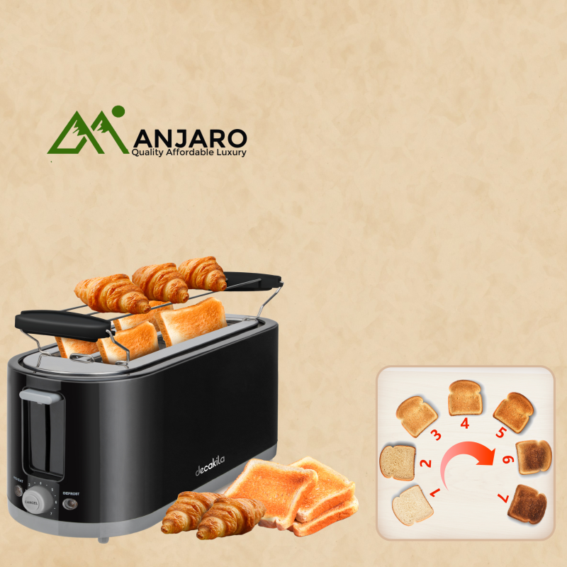 The Decakila KETS011B 4-Slice Toaster is a high-performance kitchen appliance designed to meet the needs of busy households. With its powerful 1400W motor, it ensures quick and even toasting of up to four slices of bread simultaneously. The toaster features a 7-setting browning control, allowing you to customize your toast to your preferred level of crispiness. Additional functions include defrost, reheat, and cancel buttons, providing versatility for various toasting needs. The removable crumb tray ensures easy cleaning, while the cord storage function helps keep your kitchen countertop tidy.