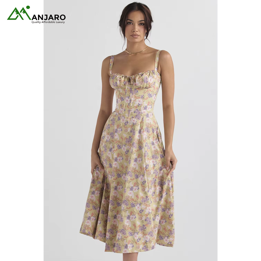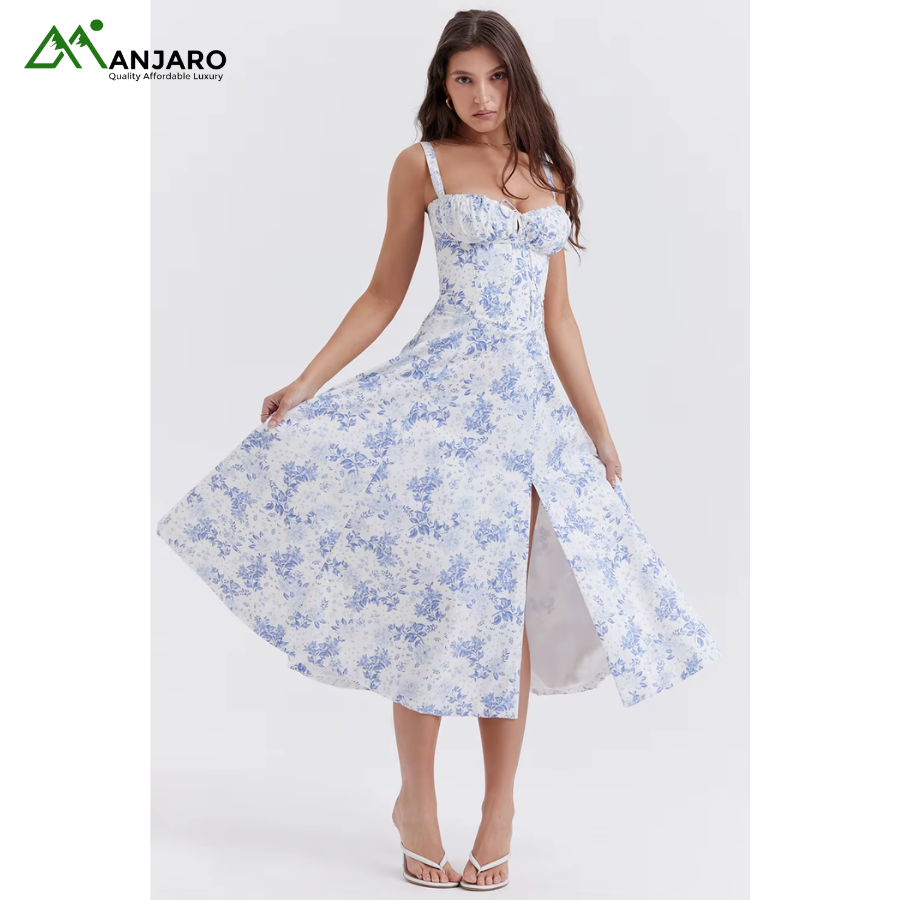 Embrace effortless summer elegance with the D&M Sleeveless Floral Print Midi Dress. Featuring a playful side split, tie-up bow straps, and an asymmetrical neckline, this dress combines a light chiffon fabric with a loose, breathable silhouette for ultimate comfort. Perfect for casual outings, brunches, beach strolls, or warm-weather gatherings, it is eco-friendly, dry-cleanable, and machine-washable, making it as practical as it is stylish.