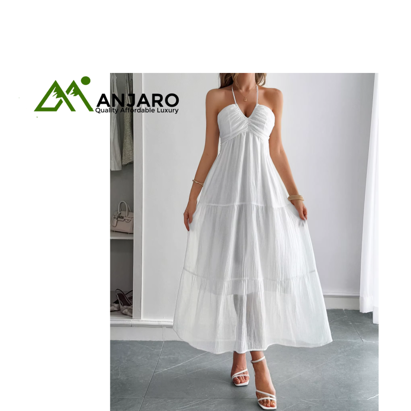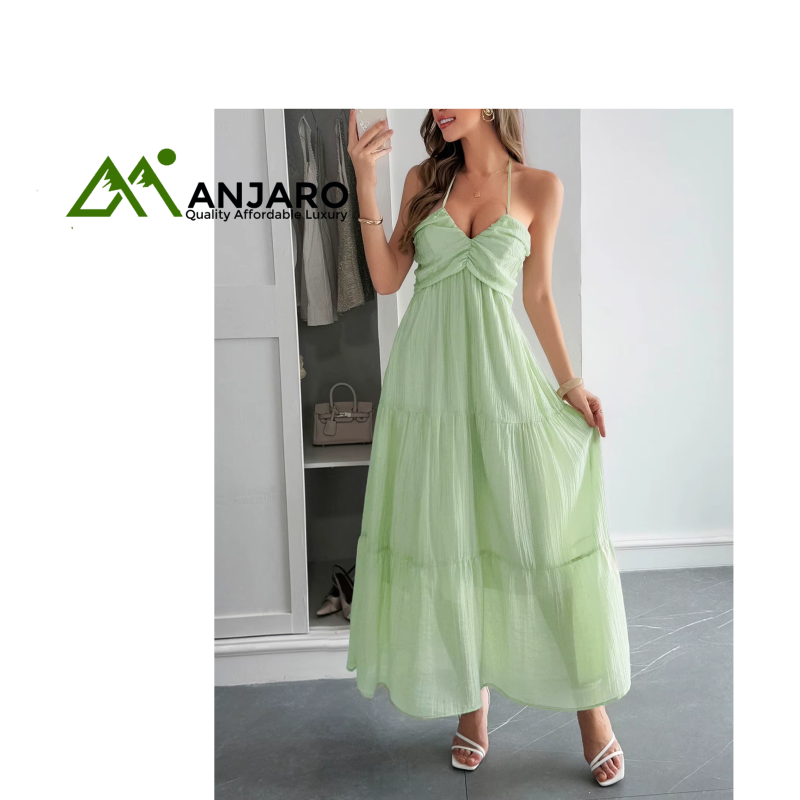 Effortlessly chic, the D&M Sleeveless Halterneck Midi Dress blends modern romantic style with casual summer wearability. Made from soft, breathable Lyocell fiber with a light polyester lining, this dress delivers comfort with a naturally flowing drape. Its halter neckline and open-back design create an elegant silhouette, while the semi-transparent finish adds subtle allure. The A-line cut and regular fit provide an easy yet refined shape—perfect for beach evenings, brunches, or outdoor parties.