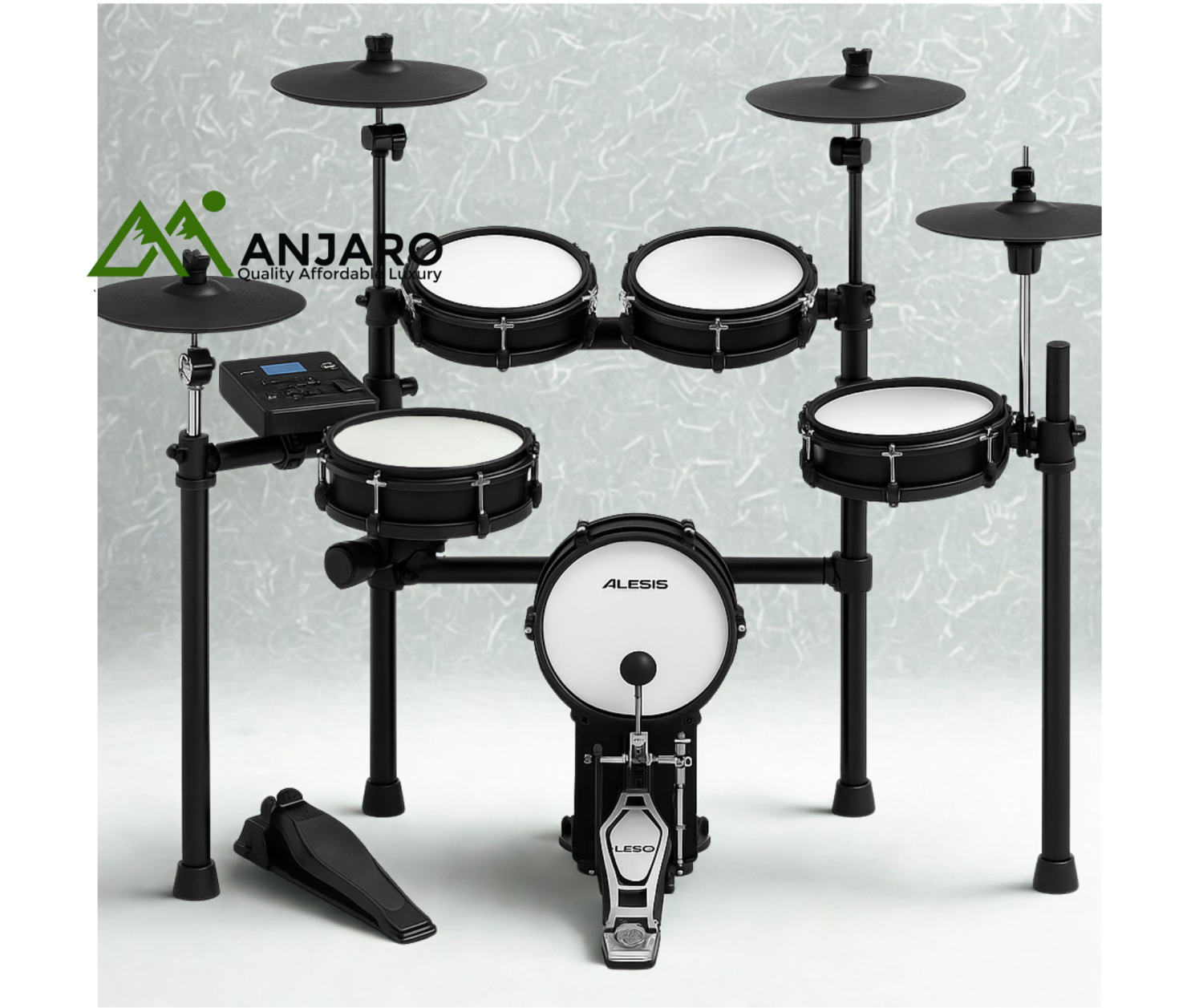 Drum Composition: 5-piece drum set with 12" mesh snare, double mesh heads for all drums