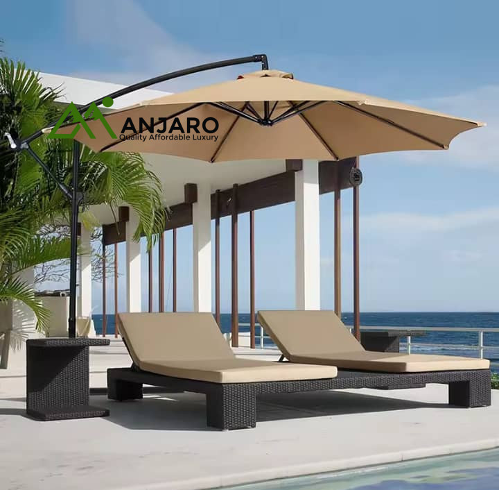 Crafted with weather-resistant materials and a durable steel or aluminum pole, it features a wide canopy, adjustable tilt mechanism, and easy crank system. The umbrella’s clean design and solid build make it ideal for patios, balconies, and outdoor dining areas.