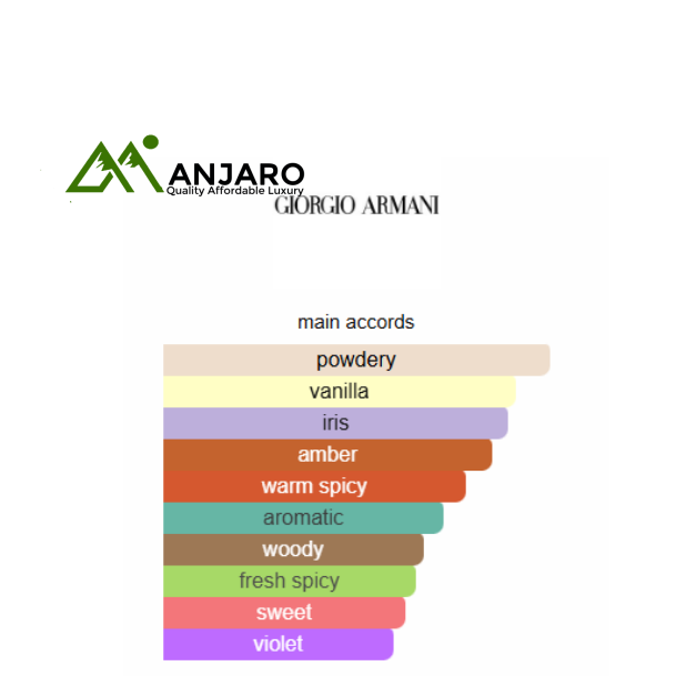 Main accords: Powdery, Vanilla, Iris, Amber, Warm Spicy, Aromatic, Woody, Fresh Spicy, Sweet, Violet