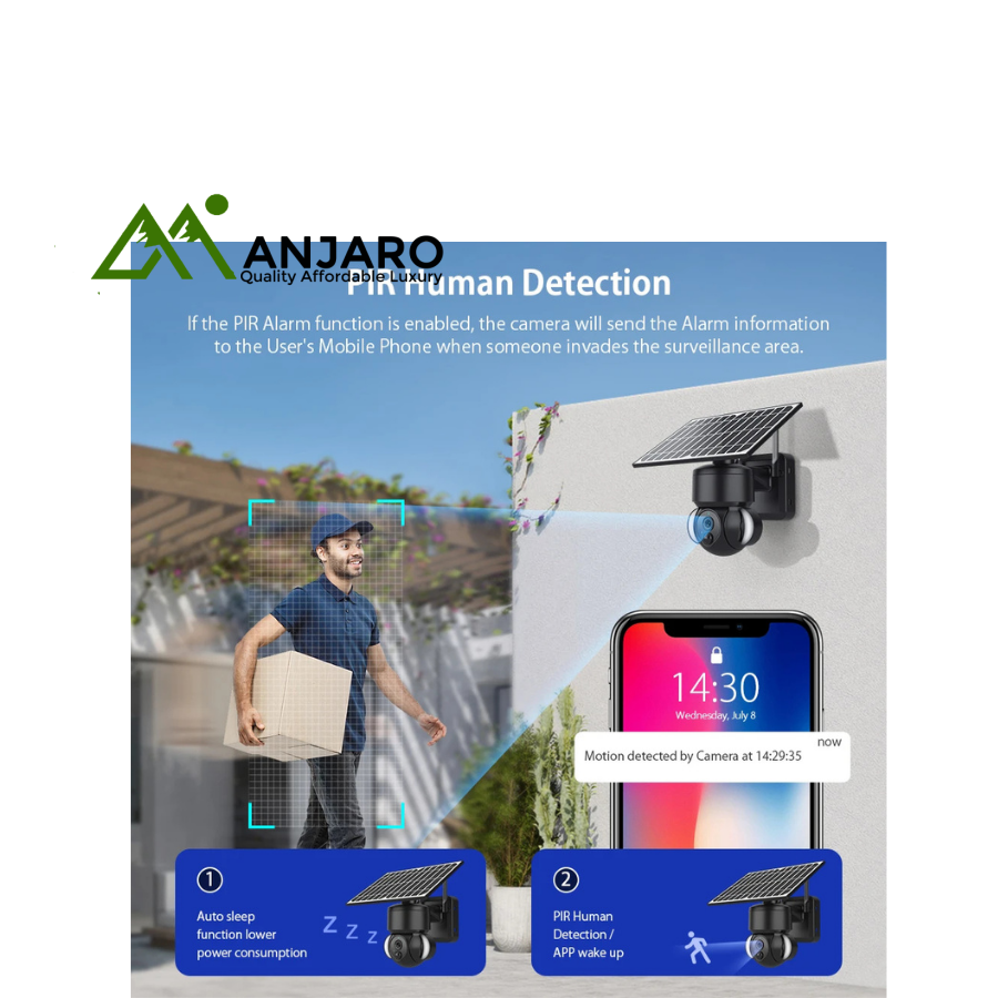 Solar powered (5W solar panel + 12,000 mAh battery) reduces maintenance and wiring needs