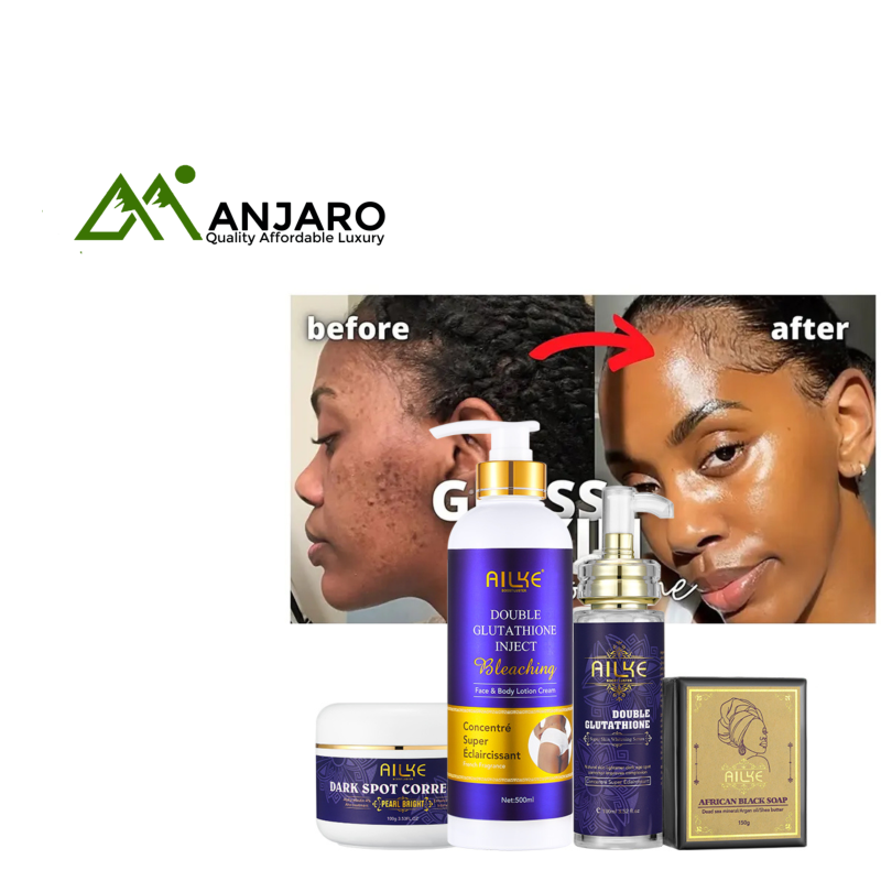 Elevate your skincare ritual with the AILKE Double-Glutathione Whitening Skincare Set, a powerful 4-in-1 beauty kit designed to brighten, nourish, and smooth skin from head to toe. This premium set includes:
