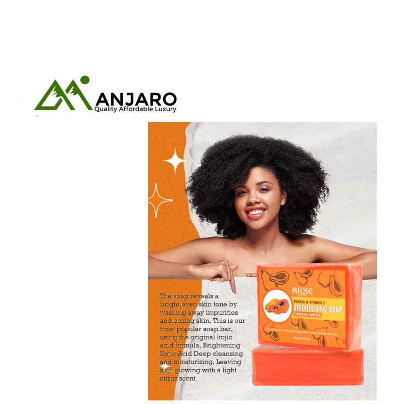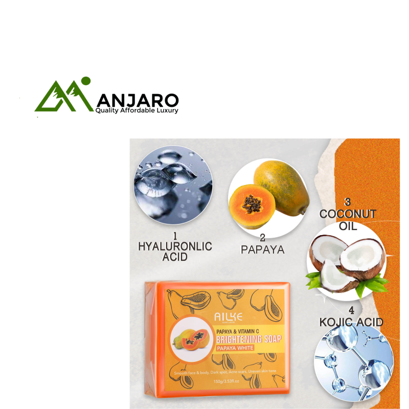 Reveal naturally brighter, smoother skin with the AILKE Kojic Acid & Papaya Soap, enriched with organic coconut oil and papaya extract. Specially formulated to target dark spots, hyperpigmentation, and acne, this handmade skincare bar delivers a powerful whitening and clarifying effect while deeply cleansing your skin.