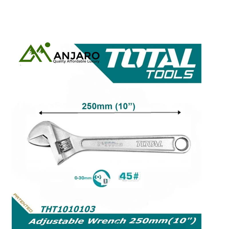 Take control of your fastening tasks with the Total Adjustable Wrench Series, designed to meet the needs of professionals and DIYers alike. Each model in this set—6", 8", 10", and 12"—offers a reliable solution for gripping, turning, and tightening bolts of various sizes. Built from chrome vanadium (Cr-V) steel, these wrenches provide strength, corrosion resistance, and long-lasting durability. The adjustable jaws ensure a snug fit on fasteners, while the anti-slip handles improve user comfort and safety. Whether you're a plumber, mechanic, or home repair enthusiast, this collection delivers performance and versatility for every job.