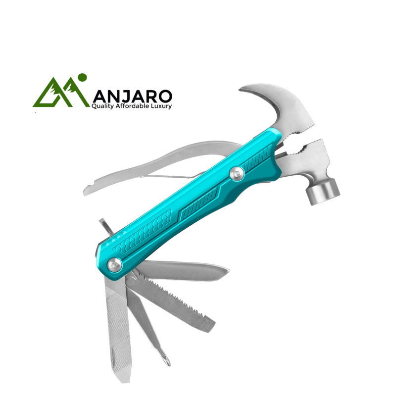 5-in-1 Design: Combines hammer, claw, axe, knife, screwdriver, and pliers
