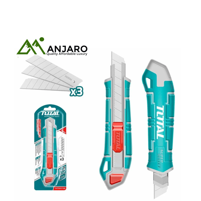 The Total THT522136 Snap-Off Blade Knife is an essential tool for professionals and DIYers who need precision, speed, and convenience. Featuring an 18mm wide blade with multiple snap-off sections, this cutter ensures you always have a fresh, sharp edge ready for action. The auto-locking mechanism holds the blade securely in place during use, minimizing risk and maximizing control. Its lightweight yet durable plastic body is ergonomically designed for extended comfort. Ideal for cutting cardboard, plastic, wallpaper, or trimming vinyl and fabrics, this knife is a must-have in every toolbox, office drawer, or workshop.
