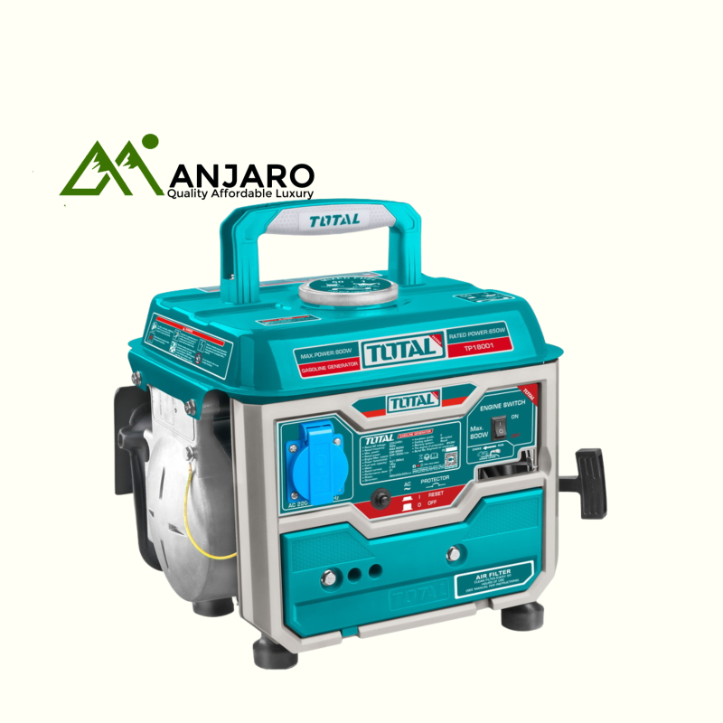 Power up your essentials with the Total TP18001 Gasoline Generator, a lightweight and compact power solution perfect for small appliances, tools, and outdoor activities. Designed for everyday convenience, it delivers a rated output of 0.8kW and a maximum output of 1.0kW, making it ideal for powering fans, TVs, lights, and charging devices during outages or on-the-go adventures.