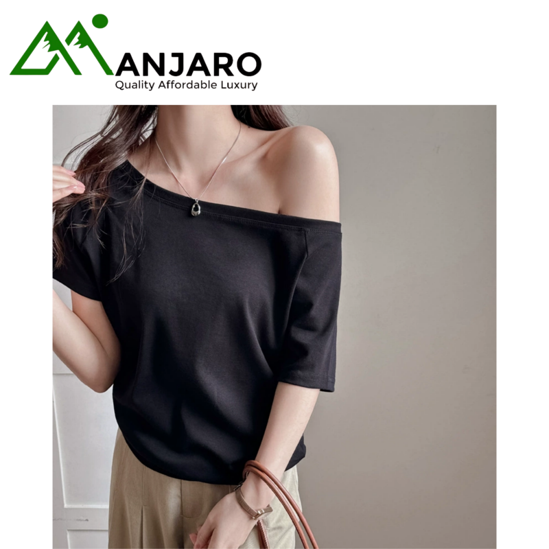 Step into effortless elegance with this One-Shoulder Loose Large Version Short-Sleeved T-Shirt for Women — a chic fusion of comfort and sophistication. Made from premium modal fabric, it drapes beautifully on the body while allowing breathable comfort all day long. The off-shoulder neckline adds a subtle, fashionable edge, making it perfect for casual outings, relaxed weekends, or elevated everyday wear. Whether paired with jeans, shorts, or a skirt, this niche design T-shirt delivers a statement of style and confidence.